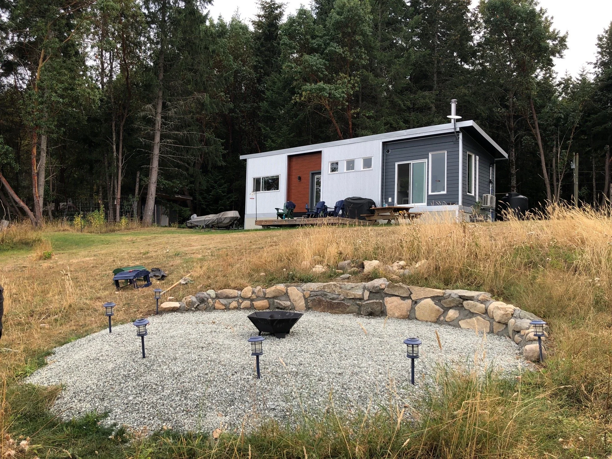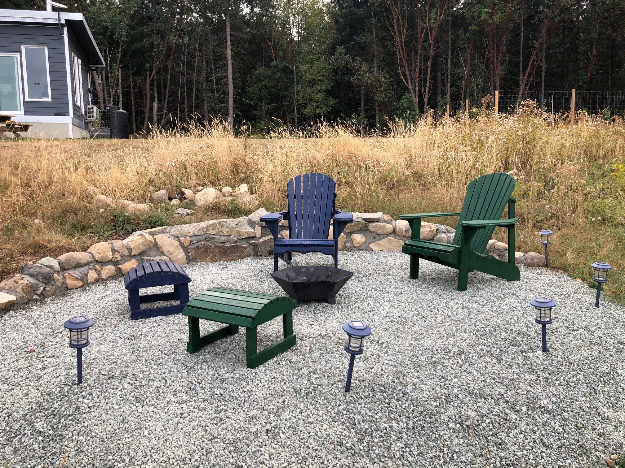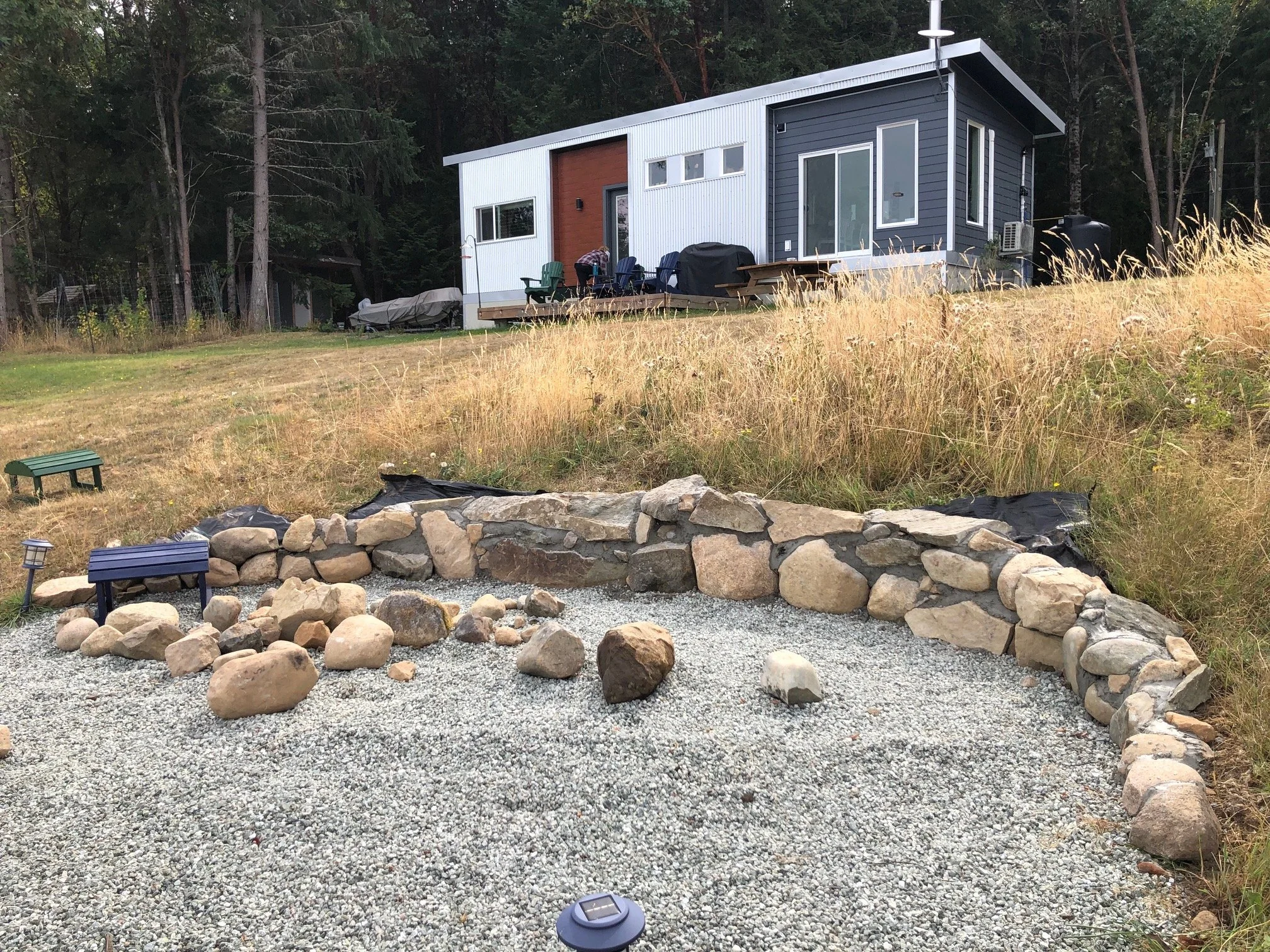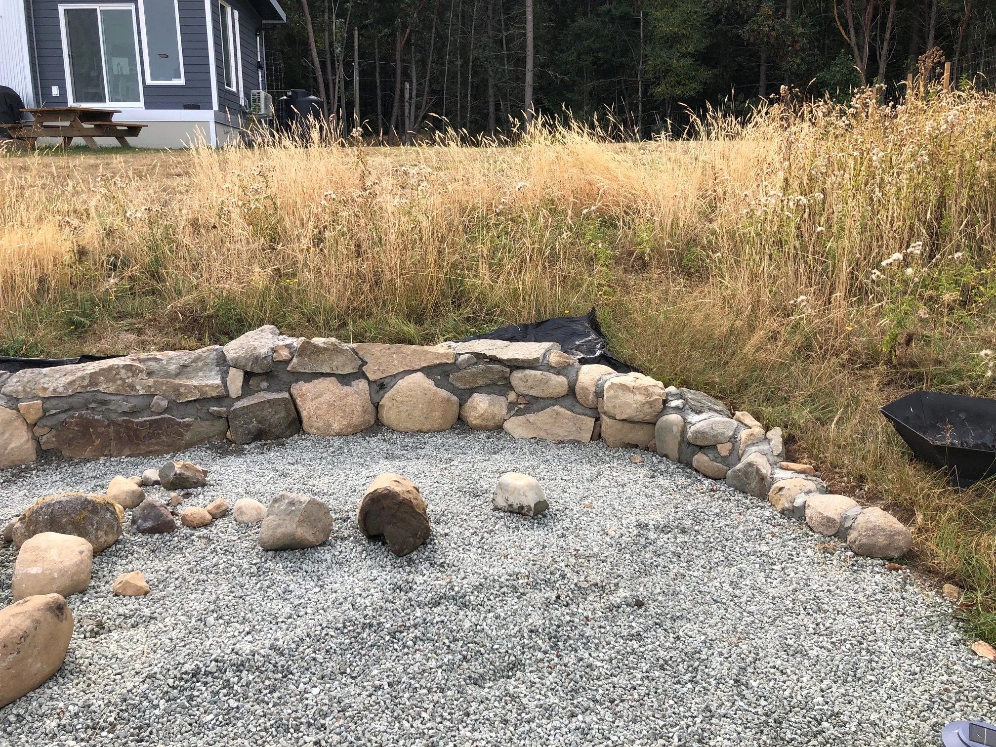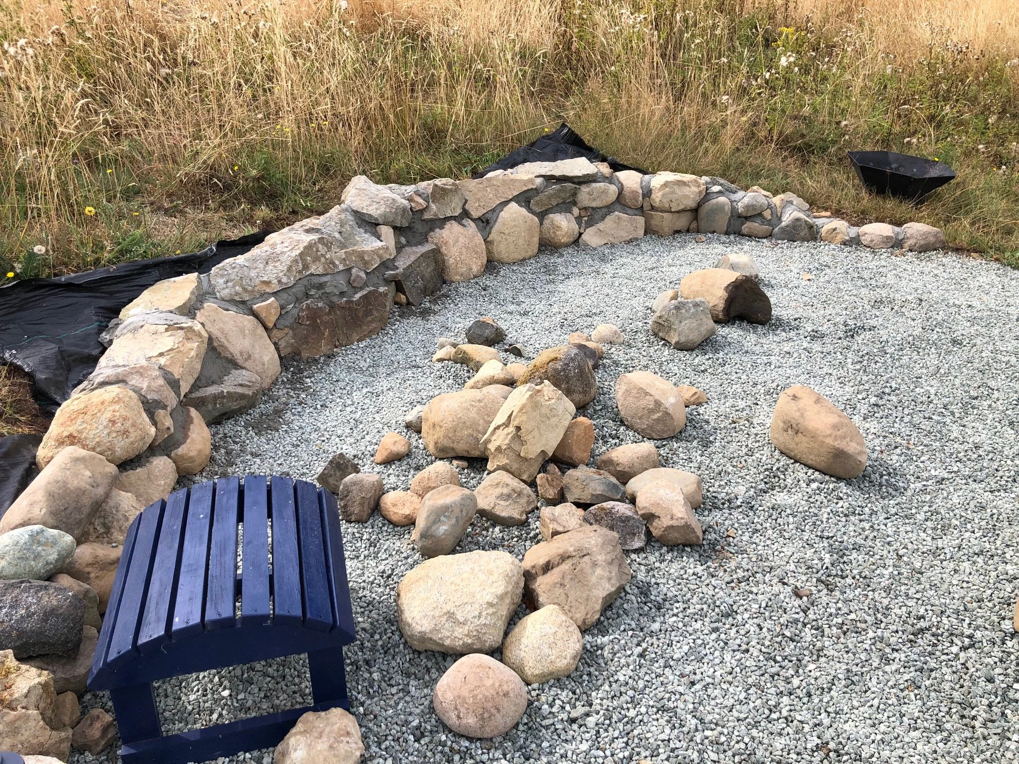Earlier this year, we started to build a fire pit in front of the cottage. We dug down a level area that had a decent view of Mount Baker (when you can see it), leveled it out as it’s on quite a slope, and put down a load of gravel to make a nice safe area to have fires. We can’t use it in the summer, so we had maybe one or two fires in the late spring.
