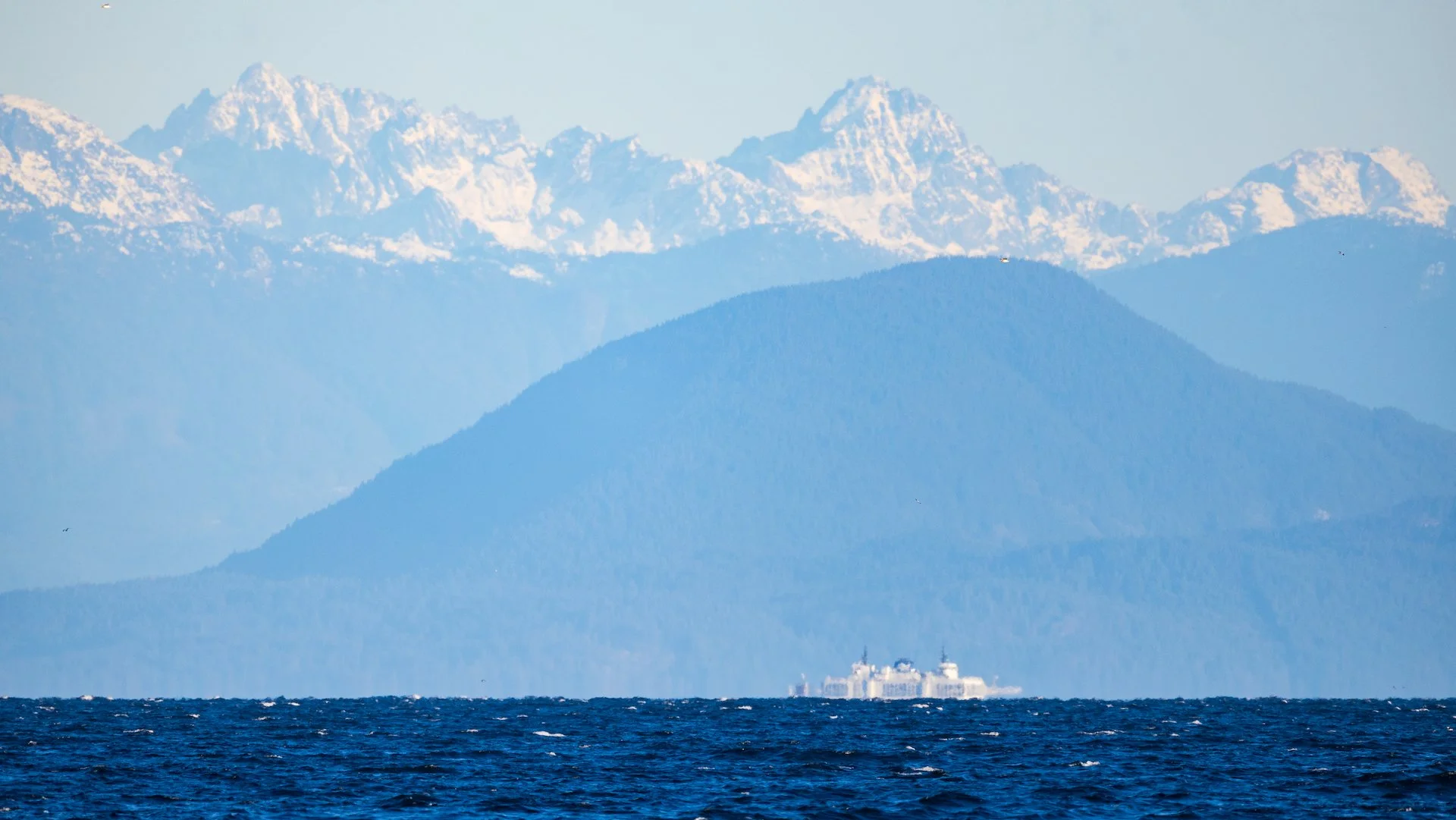 It was a nice clear day and you could see snow on the mountains across the straight.