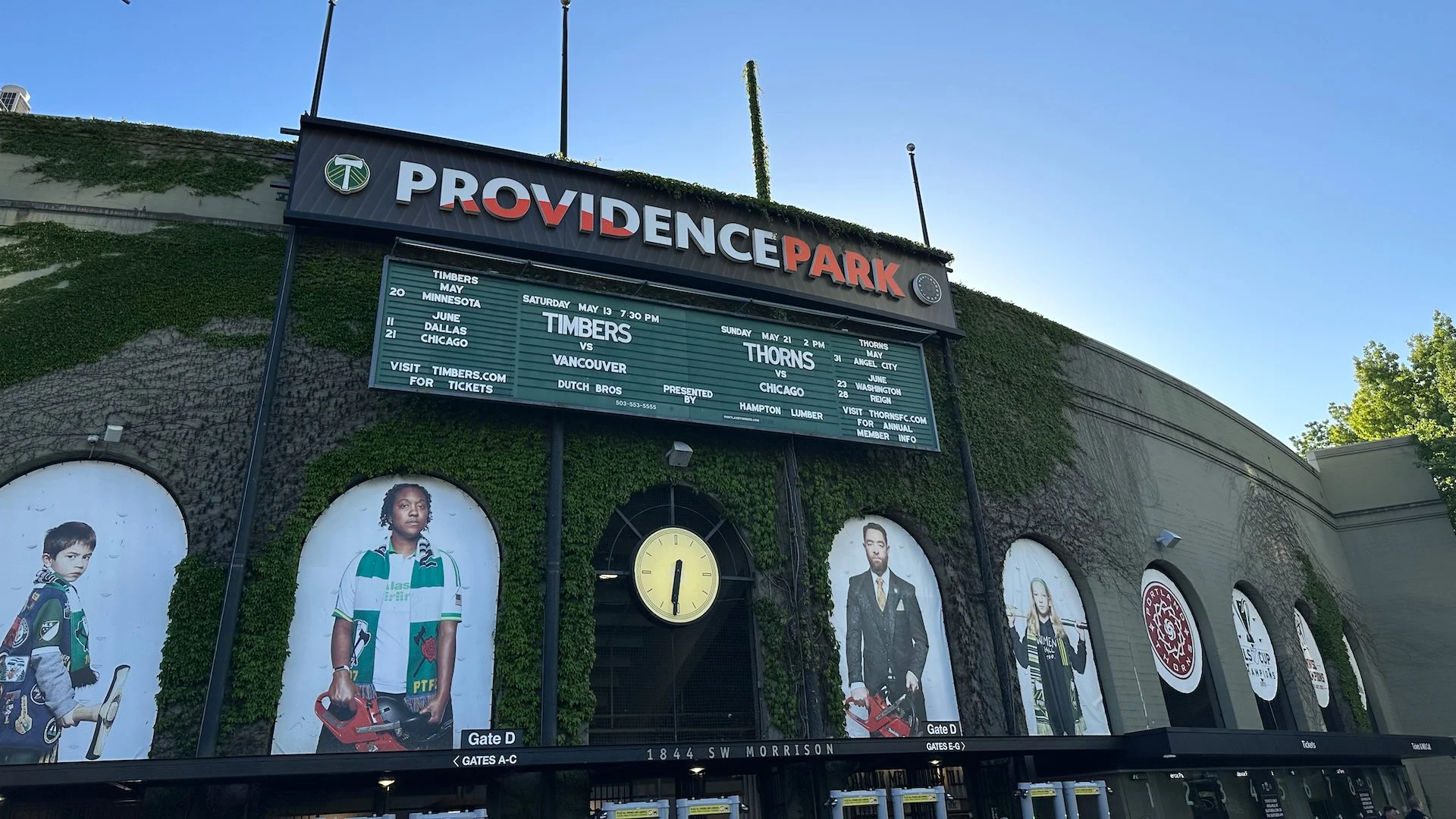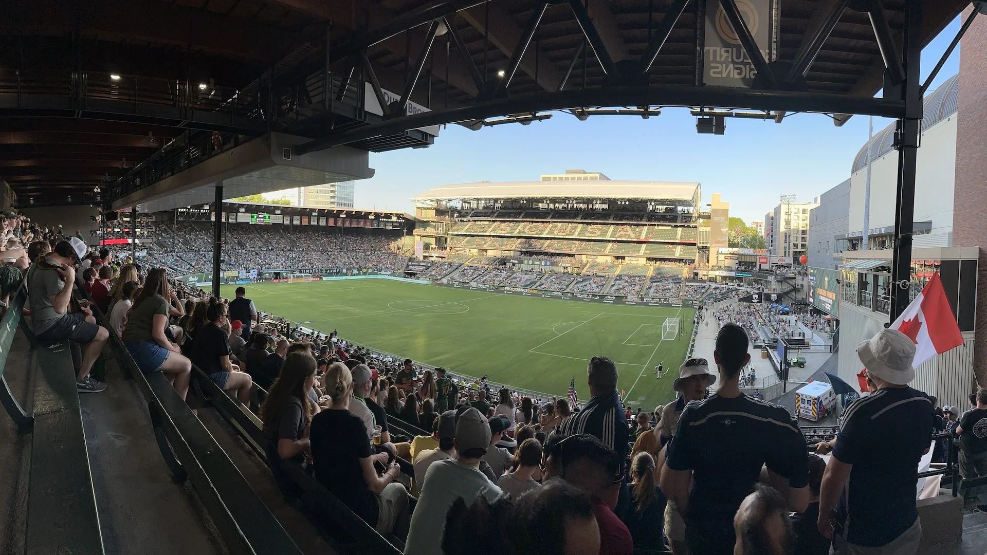 After a quick stop at the hotel to change, we made the very short walk over to the pitch. Providence Park is a great venue. It an old stadium, but as we discovered they had added a huge new stand to the stadium! Another 5,000 people can now attend games. And they get a good turnout - it certainly makes the Vancouver attendance look pathetic.