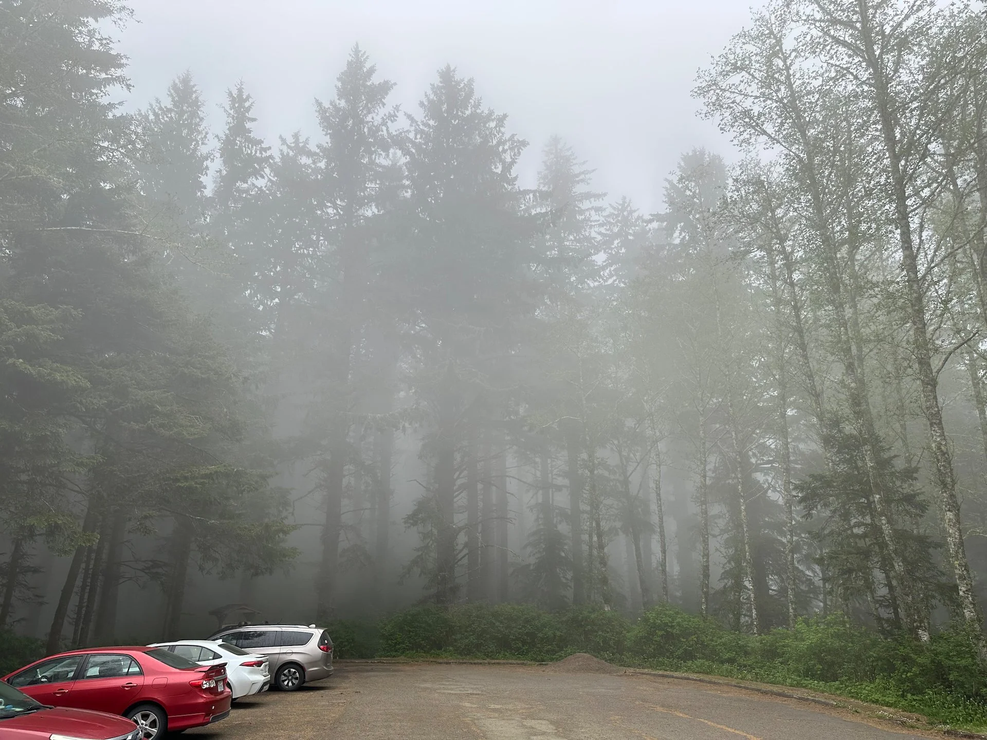 The hike back was much as the hike in had been, as it followed the same trail. The clouds seemed to be hugging the coast, as it was clear out at the point but as we got closer and closer to the trailhead, the clouds sank back in over the trail.