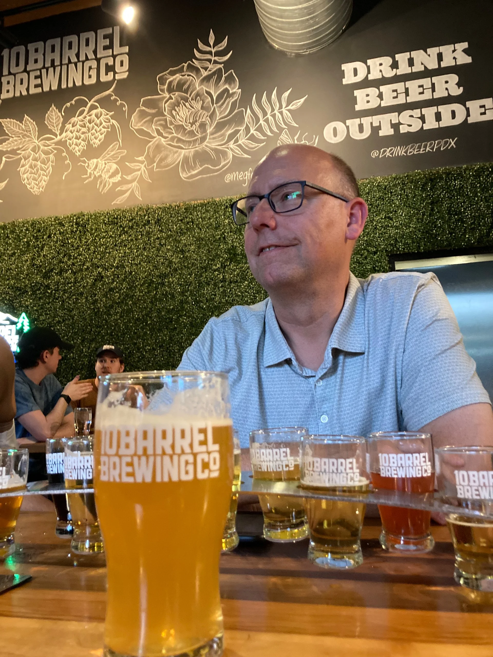 Stuart arrived and we met him back at the hotel. It took a while to get him sorted, and then we were off to enjoy the breweries of Portland before our evening soccer match!