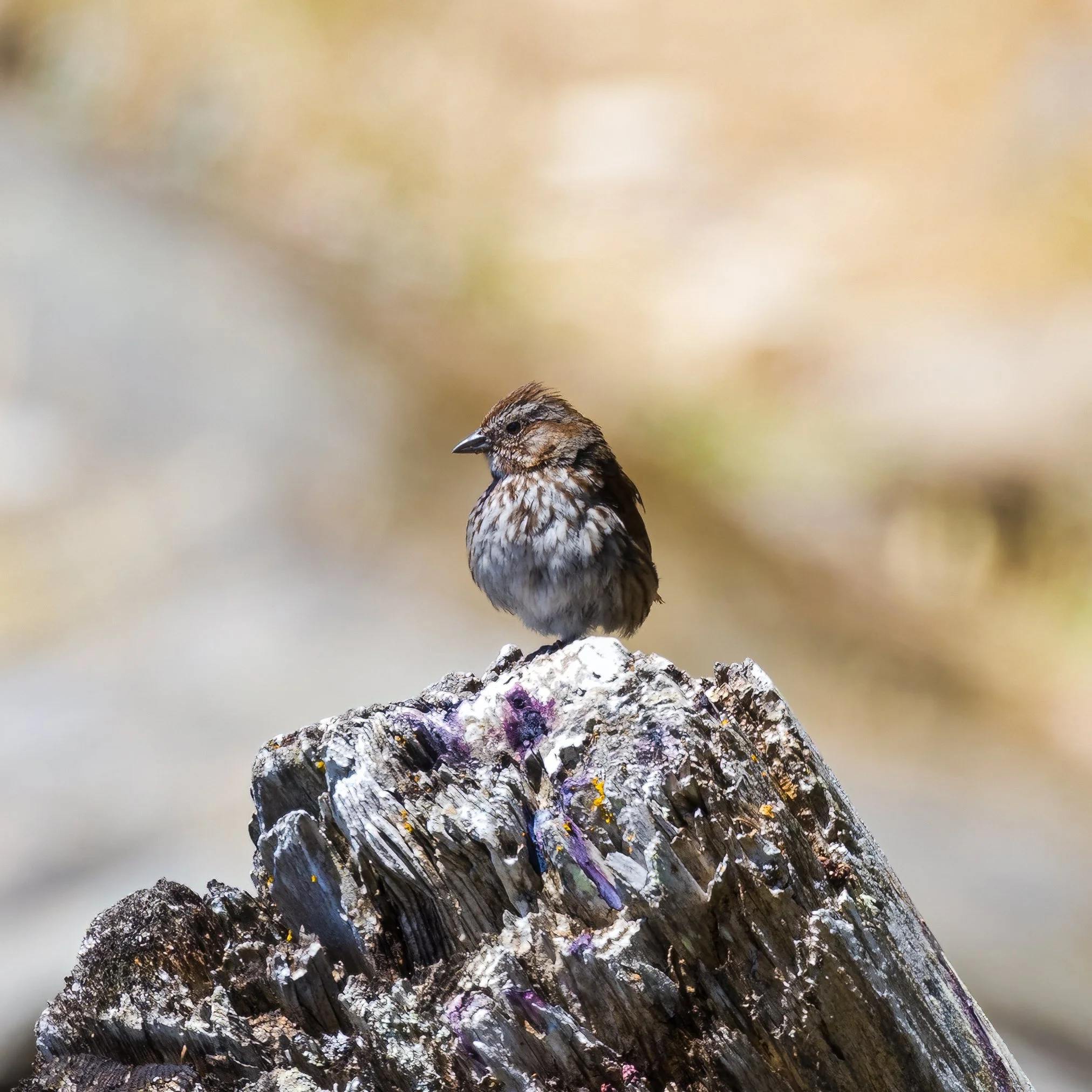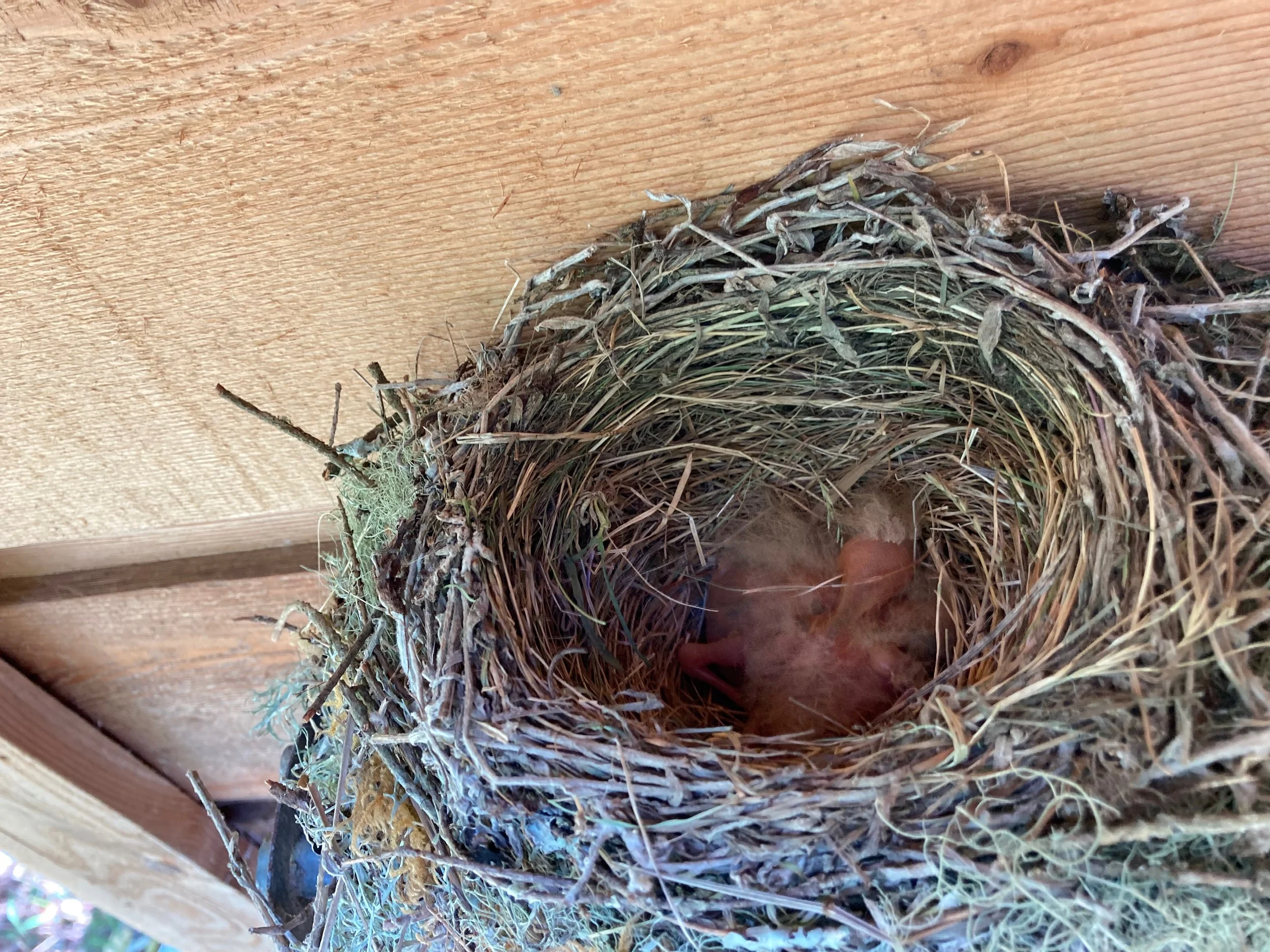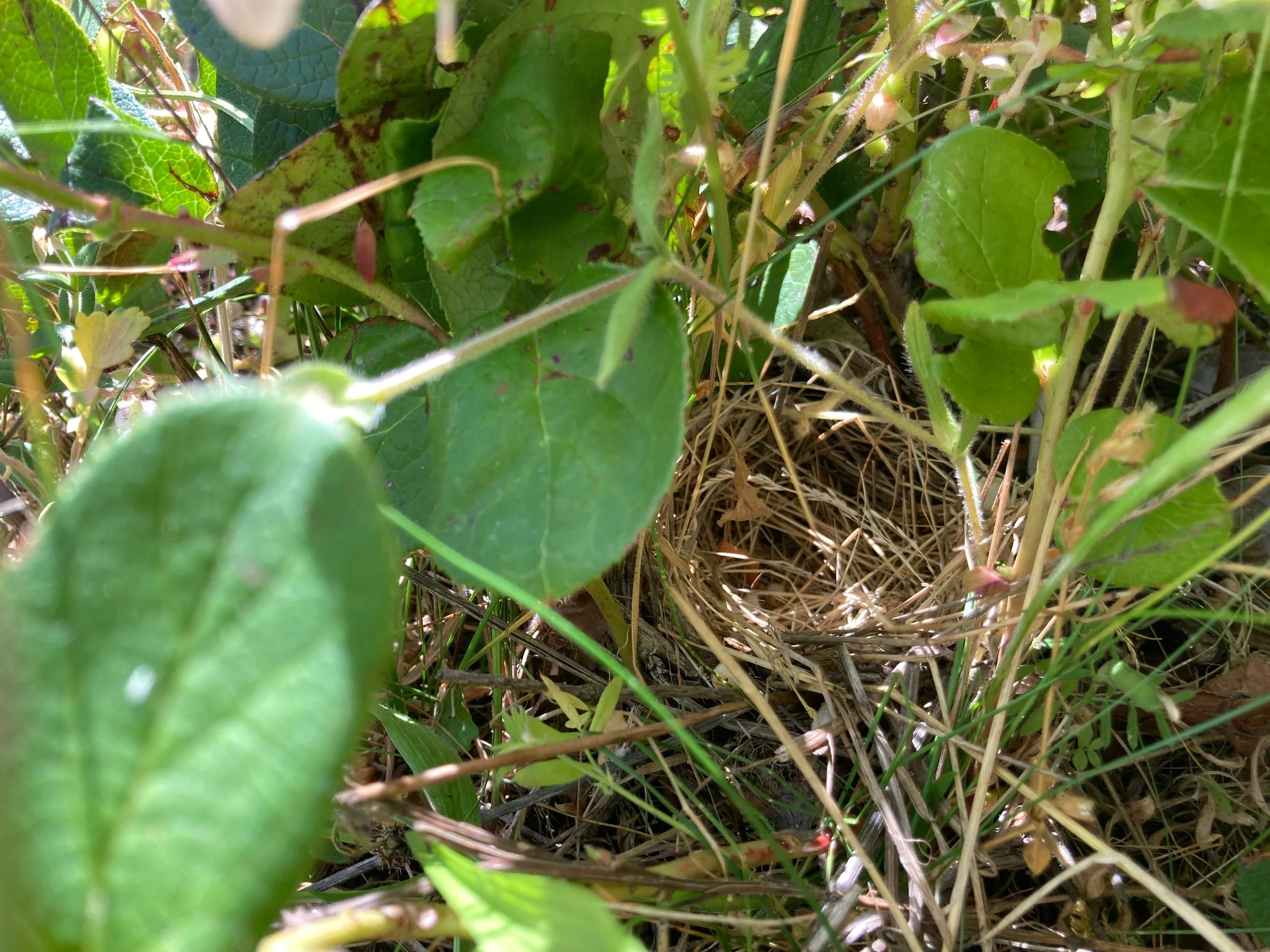 We’ve been very fortunate this spring to find lots of bird nests around the property. On this trip, Justine found another white-crowned sparrow nest, hidden in the salal. The robin’s eggs also hatched and there are two young in the next. Momma robin attacked Justine when she got too close