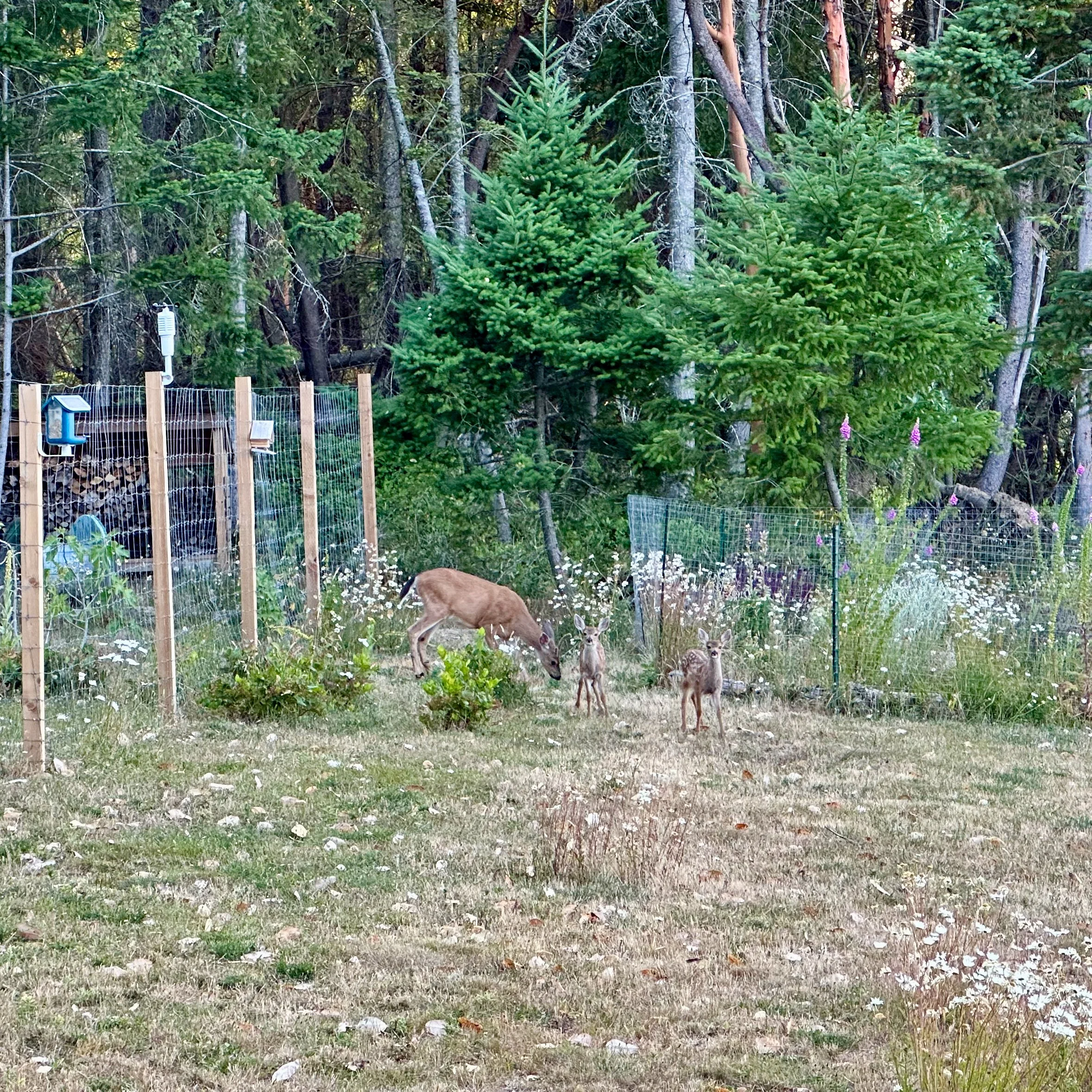 Sunday morning, Justine woke up early for some reason - around 5 a.m. She got up to look at the sunrise, but startled me awake with “there’s a deer in the orchard”. Sure enough, one had managed to get in. We’re still not 100% sure how, but when doing a full inspection we did find a piece of fence where one of the larger holes had been bowed out. It didn’t look big enough for a deer to get through, but we’re at a loss other wise.