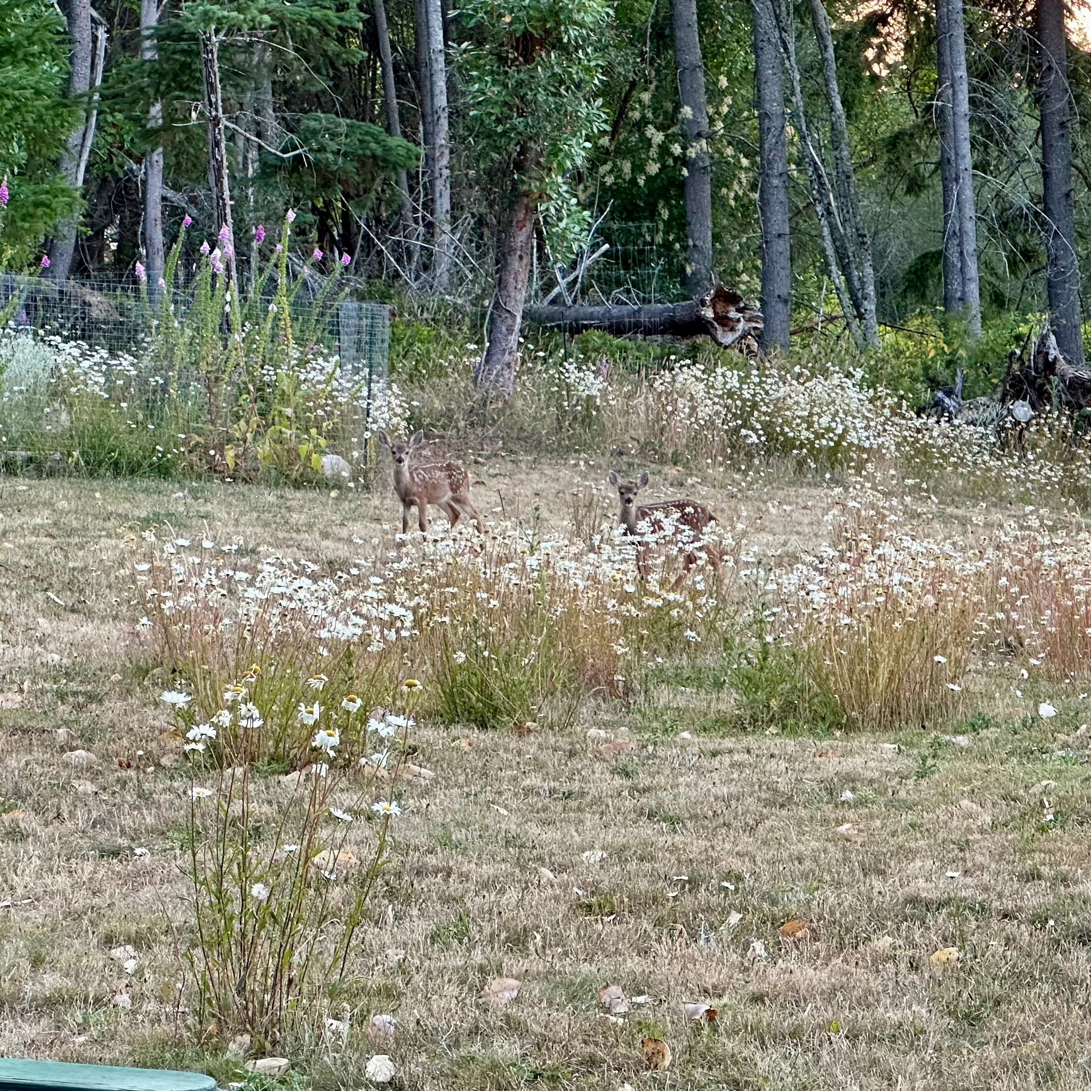 The little fawns visited us a few times this week. We didn’t see mom, so we’re not sure what’s going on with them.