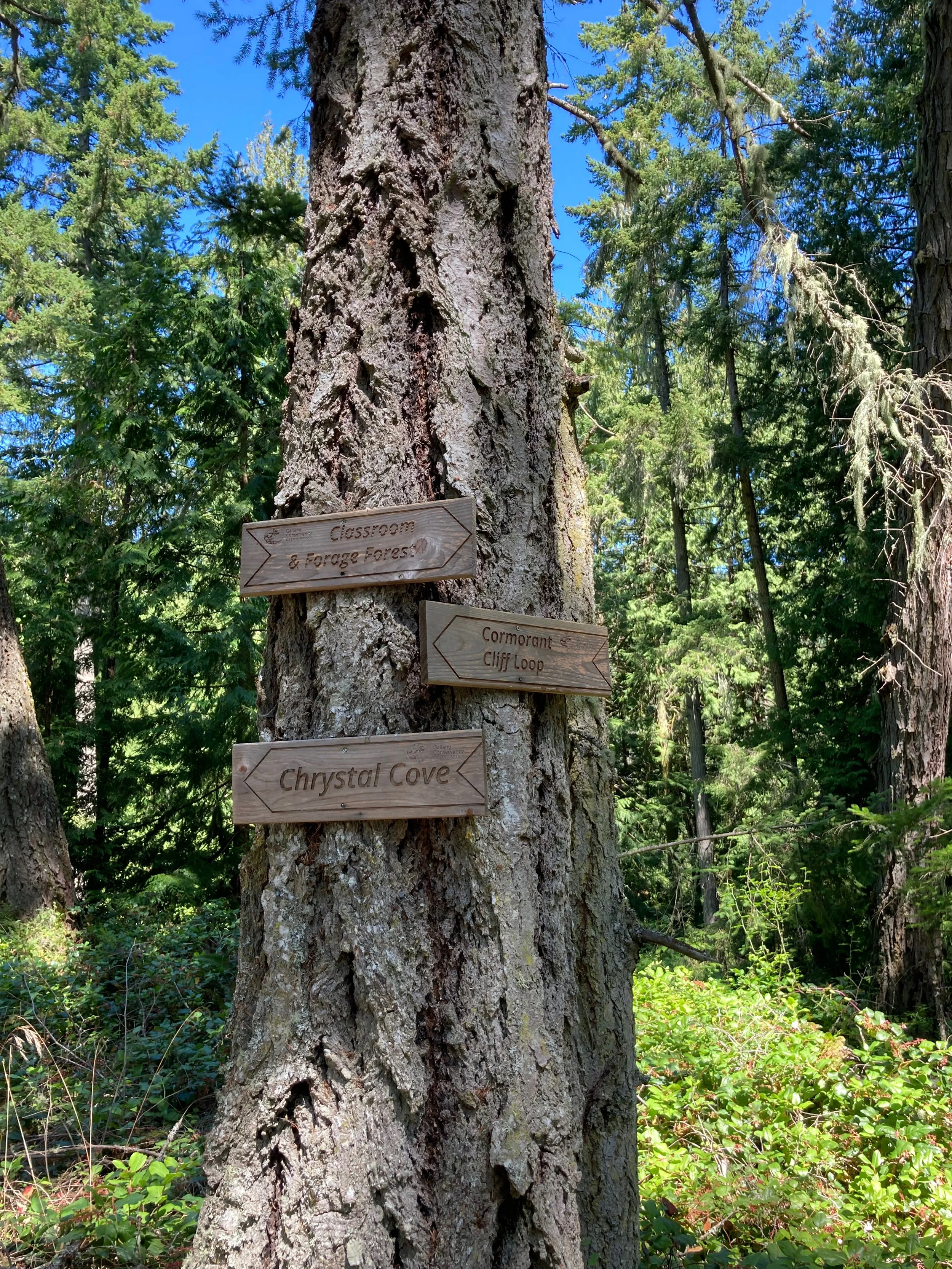 After enjoying the cove for a while Justine and I entered new territory, as we took the trail across the cove, which we had not been on before. It climbed up from the beach, eventually intersecting with the main trail. We were headed out to the far end of the Conservancy’s property, towards Tranquility Cove. The landscape started to change, with less arbutus and more douglas fir, gary oak and other species. One of the info boards actually explained that this section of the forest is considered old growth. The trees do not look as big as you would expect because the soil is so thin and poor - they just don’t grow as fast. It’s really interesting to understand and gives you a better appreciation for the forest.