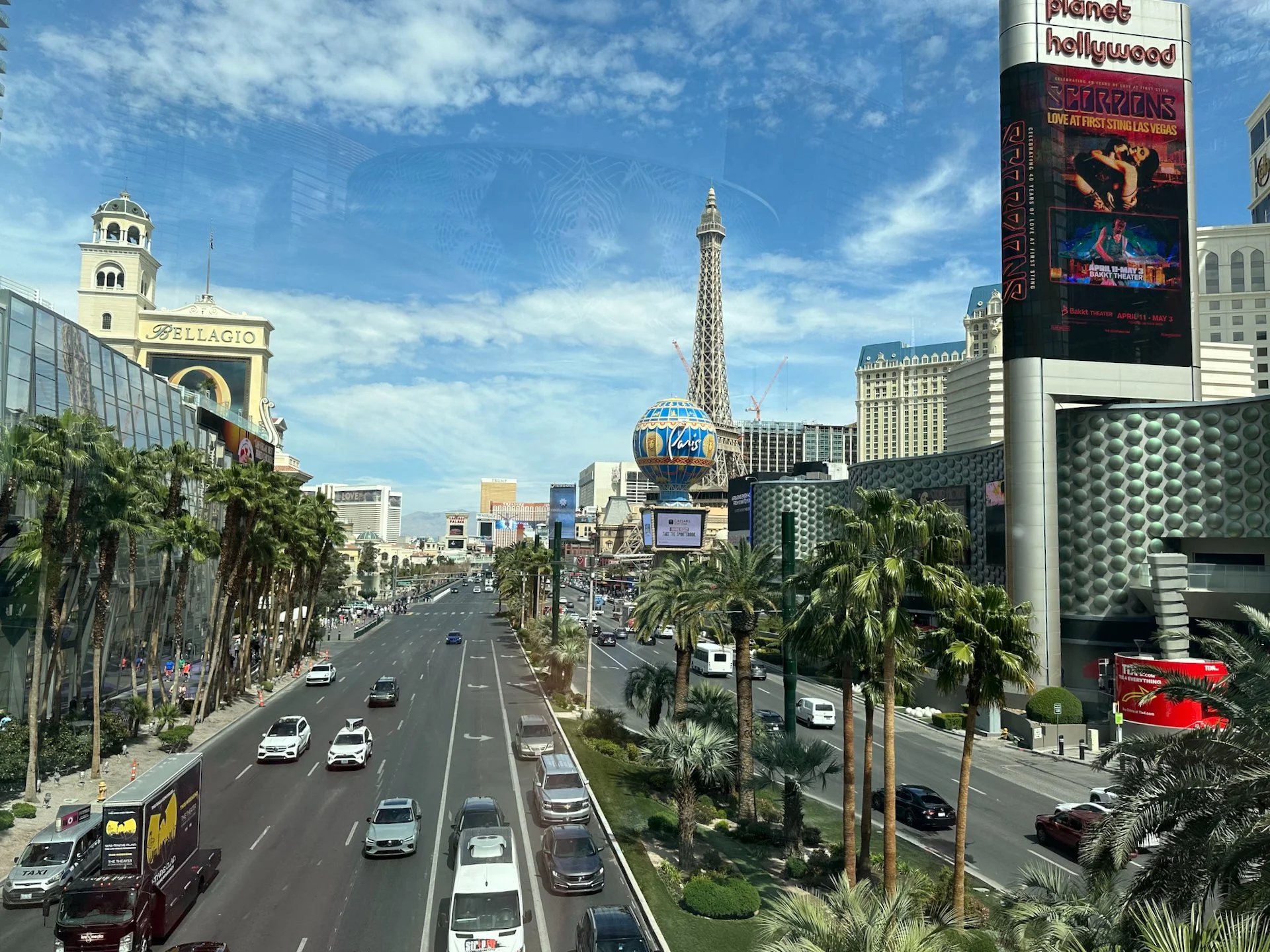 Looking up the strip from the walkway between Park MGM and the MGM Grand.