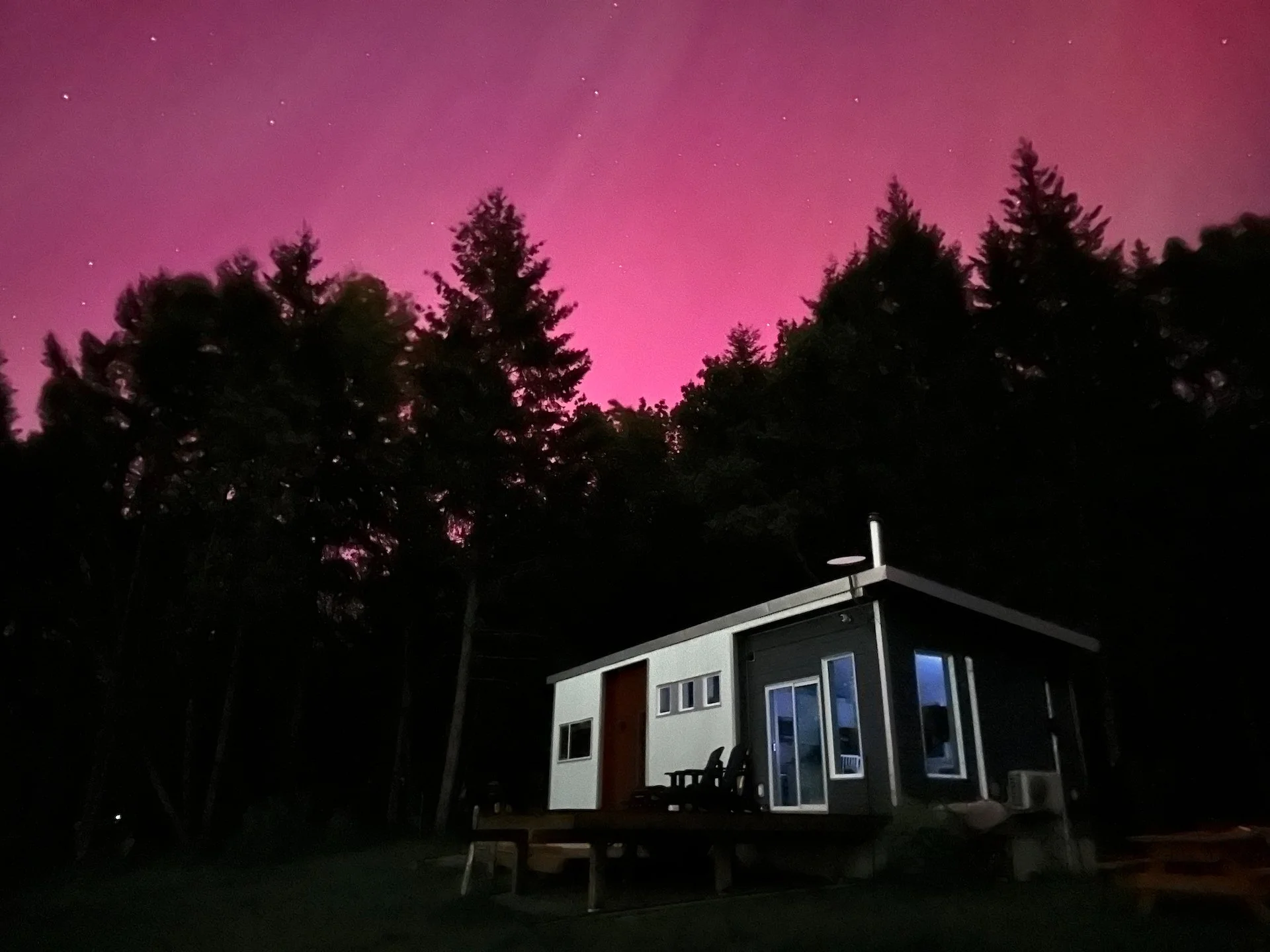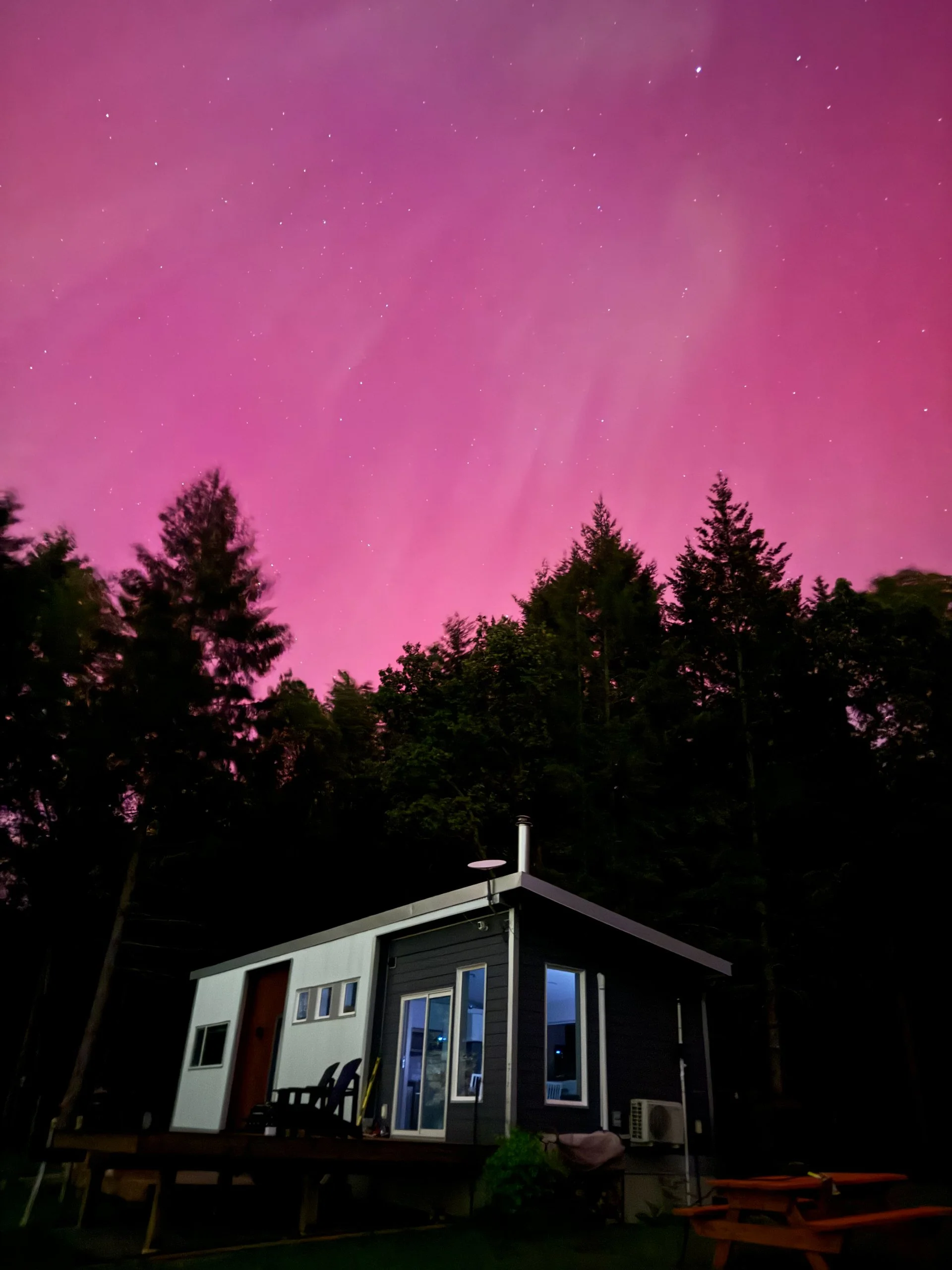 We were headed back to Galiano for the weekend to complete (or mostly complete?) our deck building project. We had a couple of final pieces to put together, and we really wanted it done and ready for when Mom was visiting over my birthday weekend. The big surprise we ended up with was the amazing Northern Lights show that happened on Friday night. It was spectacular, a once in a generation solar storm that light up the skies!