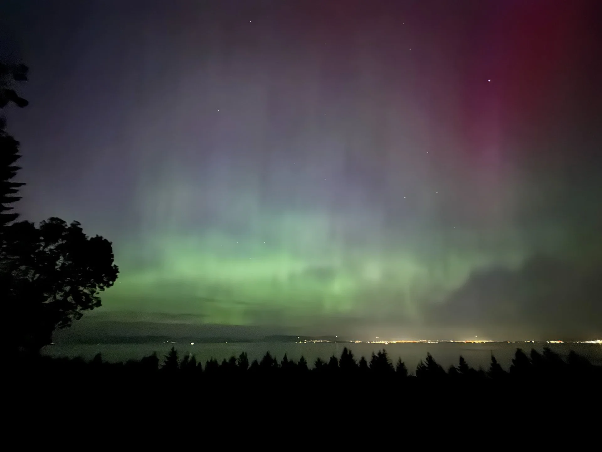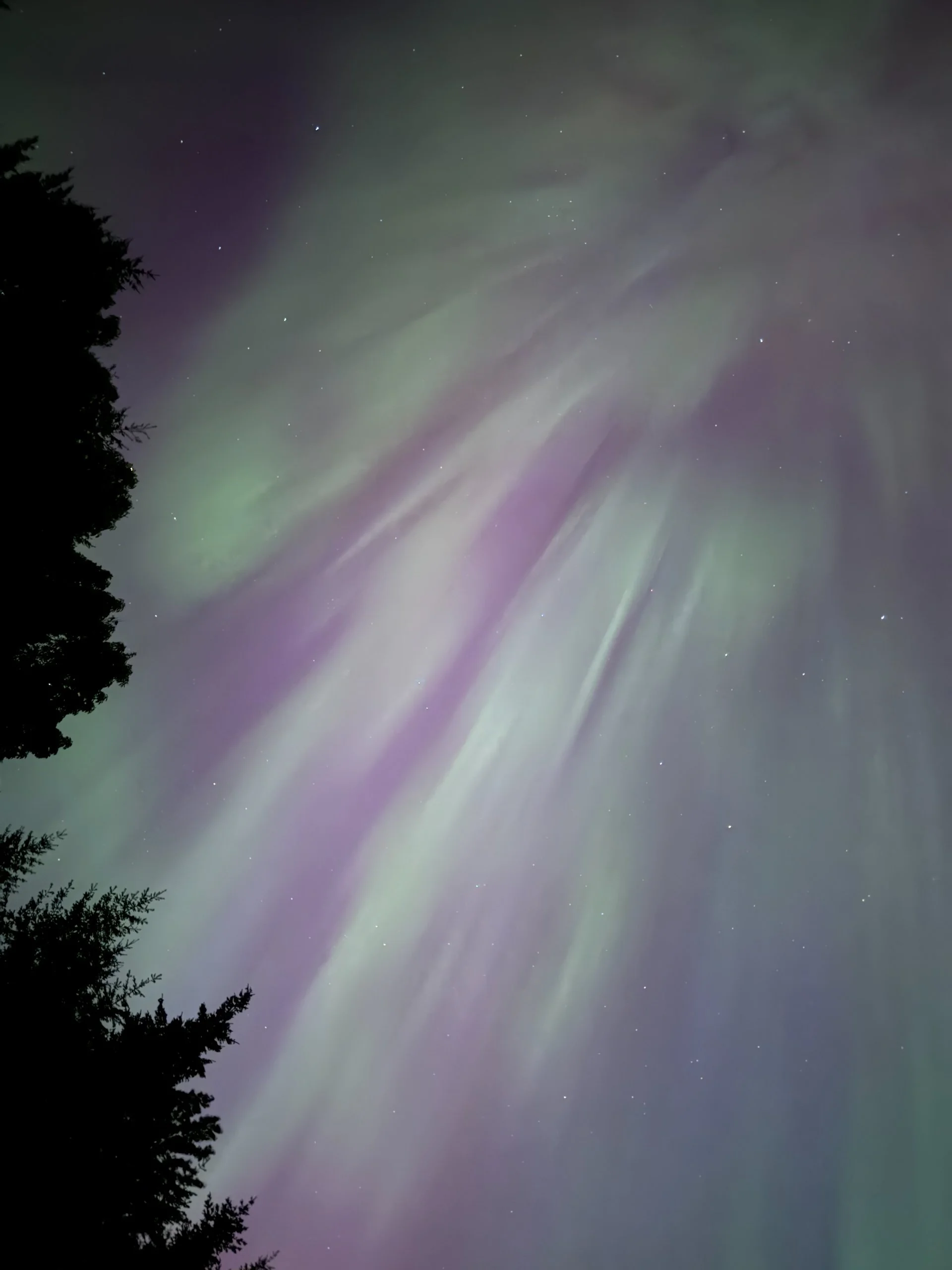 We have been lucky enough to see the northern lights a number of times. When we were up in the Yukon with Mom and Dad in 2015, I think we saw them at least 3 times during that trip. With those ones, the color was visible to the naked eye, and you could see the colors pulsing and moving in the sky, but over a pretty small area. This was completely different. You could not see the colors with the naked eye (for the most part), but you could see that there was something going on in the sky - you could see the pulsing and the movement. But it was the whole sky. Everywhere you looked, you knew it was going on. It was the oddest sensation, and very hard to put into words. The colour only came when you took photos. You could tell the difference between the pinks and the greens, but it was subtle until you took a slightly long exposure photograph. And of course, this was the one trip where I forgot my camera at home. So these photos, while they look nice are only a fraction of what they should have been. And I think Justine got better ones than I did. They are all mixed in together, but it ended up being a spectacular night. We’re in a “solar maximum” this year, where the sun is the most active it’s been in decades, so here’s to hoping that we’ll have some more amazing nighttime light shows!