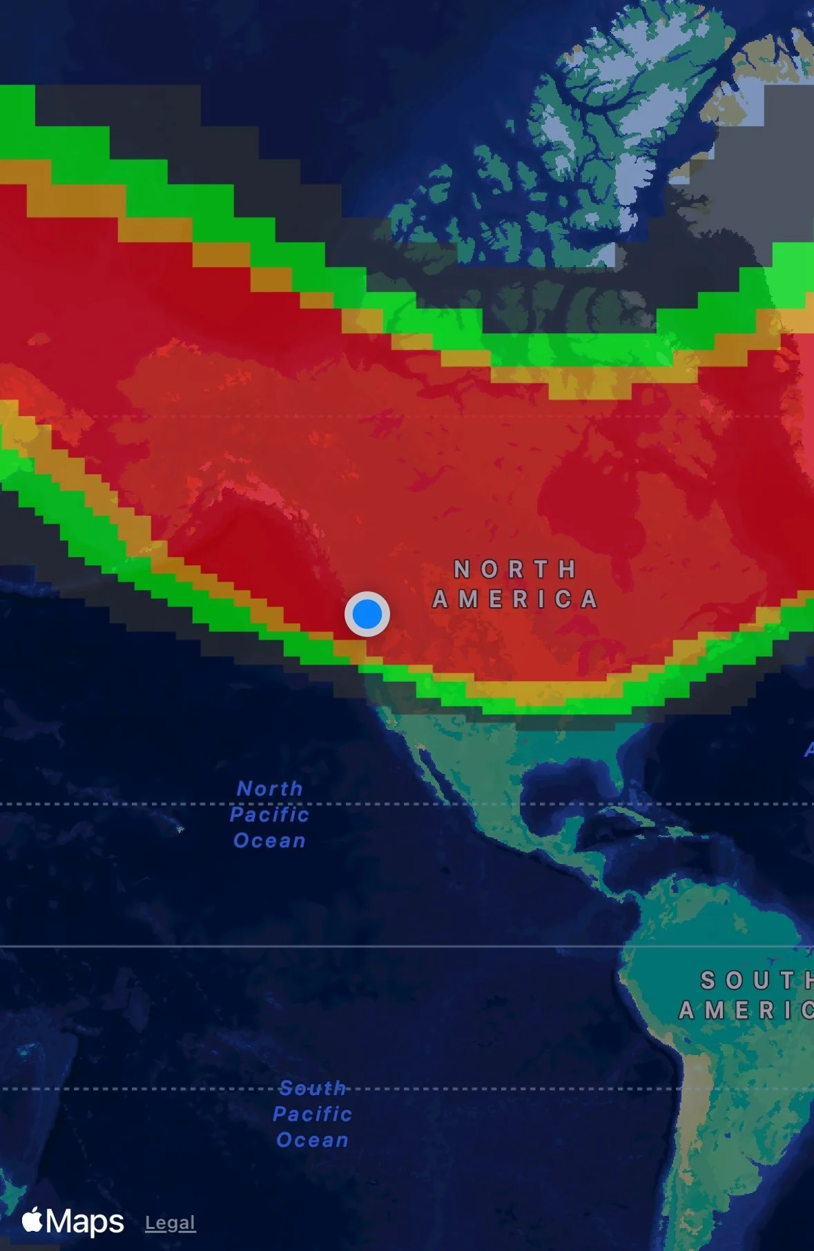 The app was showing that we should get a pretty solid show! Normally the red comes no where near us - we might get yellow, but most often we’re in the green or outside of the area of effect.
