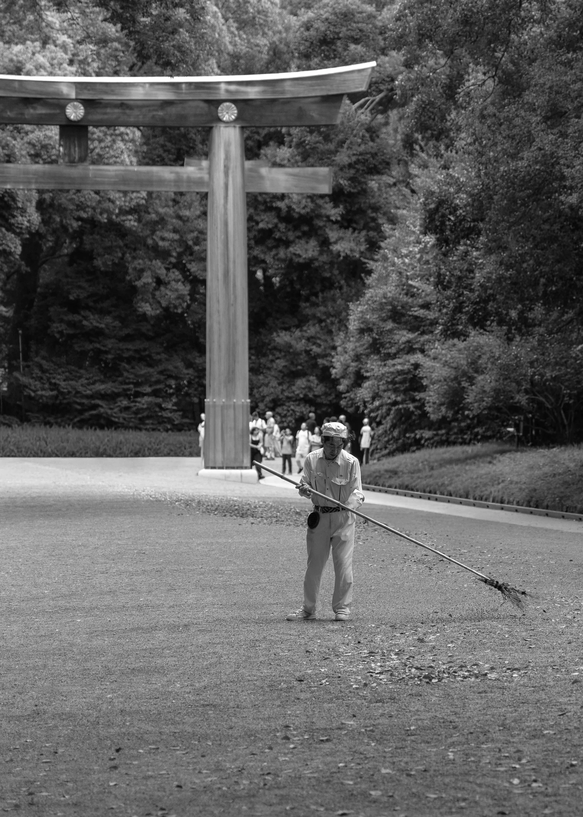 As we were leaving through the last torii gate was this amazing scene. This man was sweeping leaves off the path using a traditional hand-tied broom.