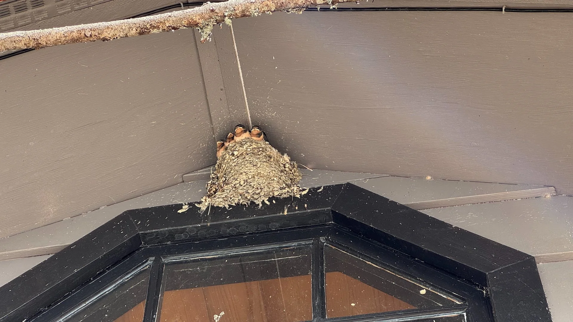 The barn swallow chicks must be very close to fledging - they barely fit in the nest!