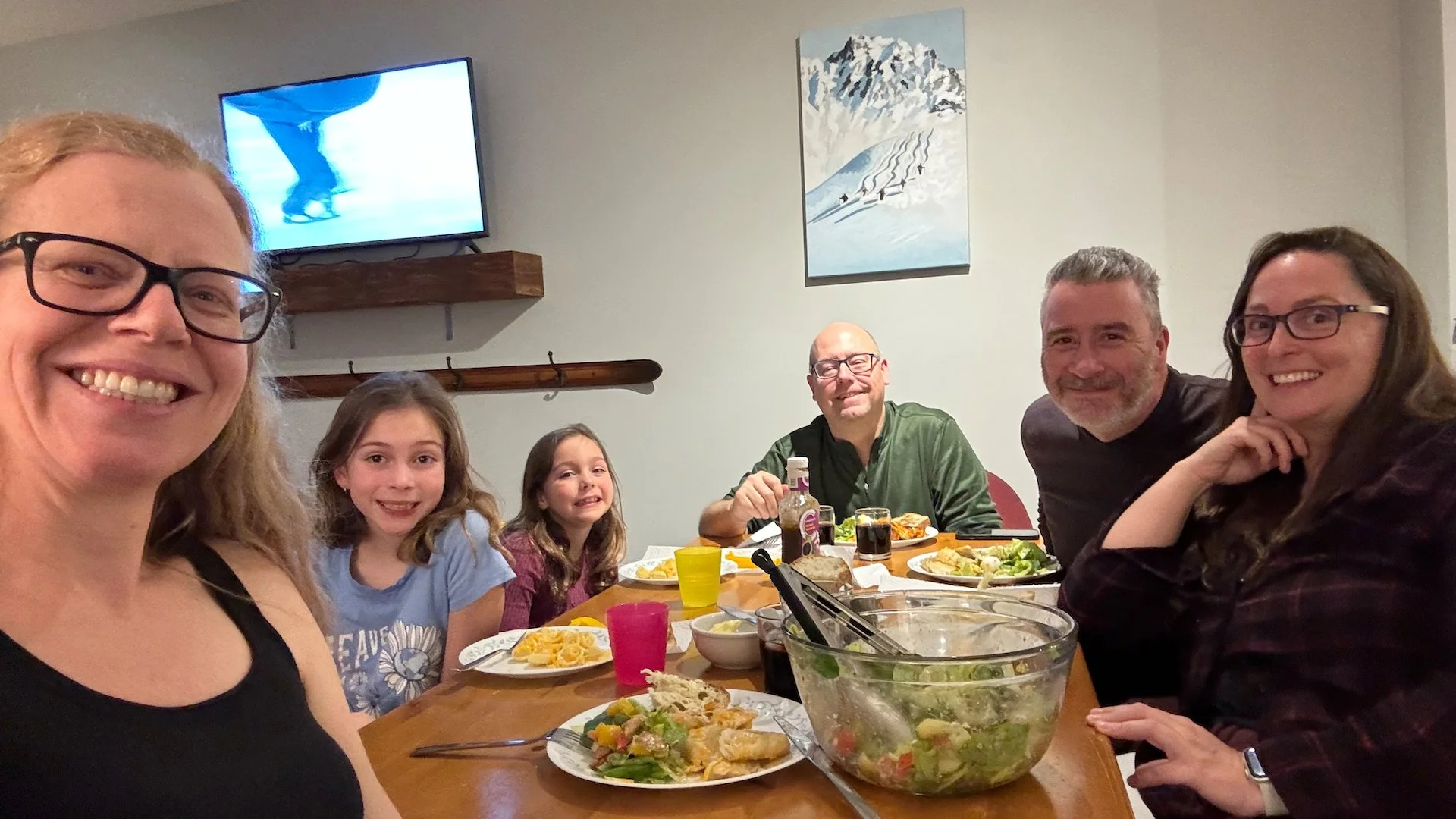 So we had a bit of a chill rest of the day. We hung out, played games, watched the Olympics and eventually got around to making dinner again. Not long after dinner, the girls headed off to bed and we continued the euchre rivalry. Stuart and I dominated once more, taking the win for the boys! It was a fun day, despite not getting to ski.