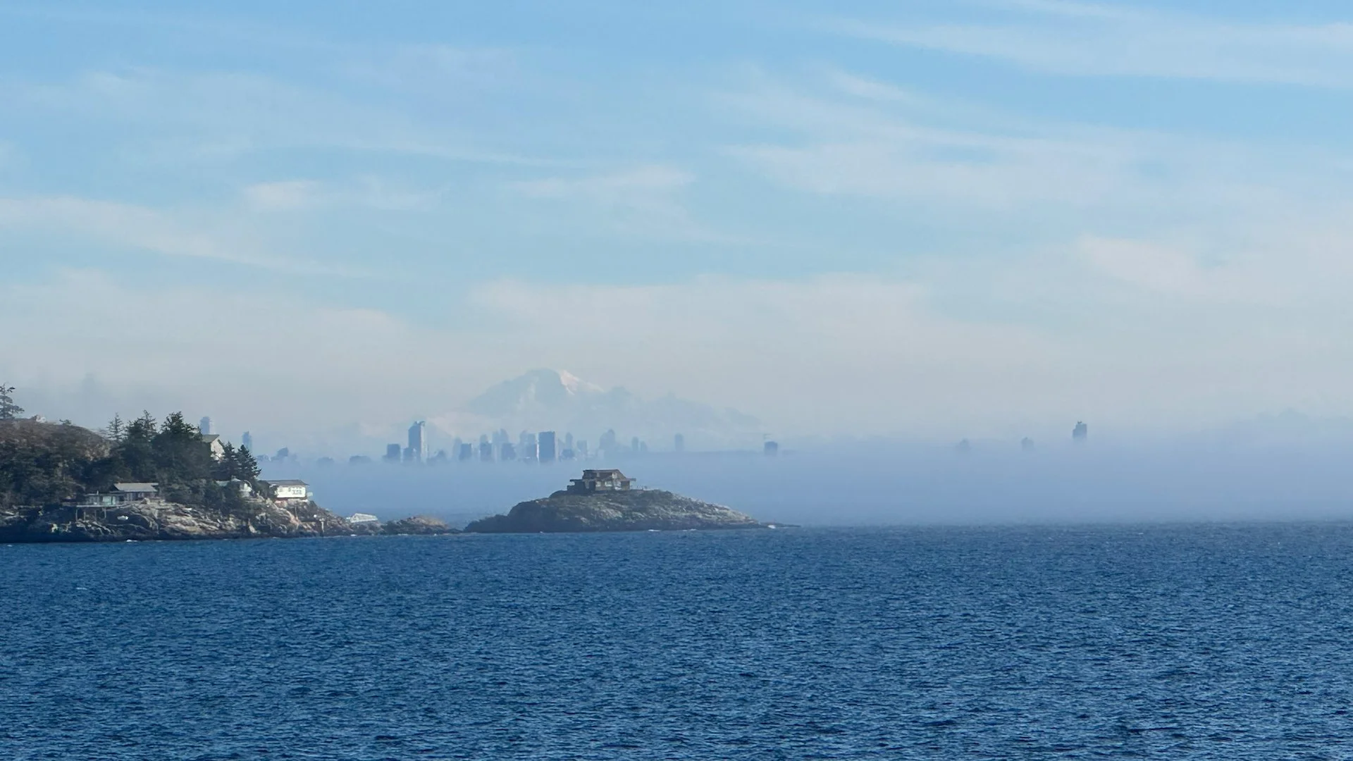 You could see the fog thickening, as we headed out from Horseshoe Bay. Still, it’s a pretty great view with Mount Baker and the city in the background, peeking out through the mist.