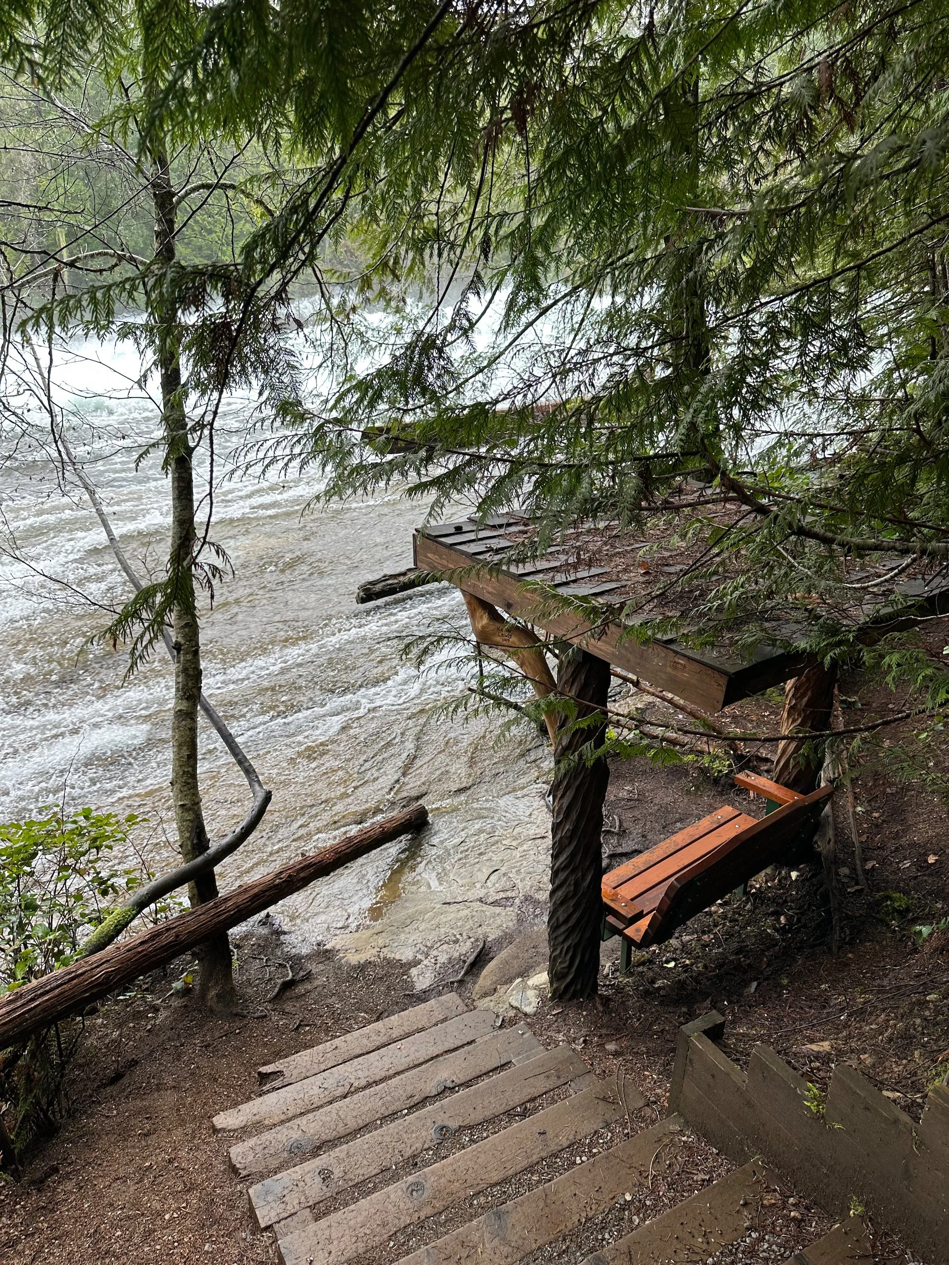 We had some time before we needed to be at the ferry, and we wanted to do something with our free morning. Looking at the drive back, there were a few options for some reasonable length hikes along our route. So we decided to stop at Nymph Falls Nature Park, just outside of Courtney.