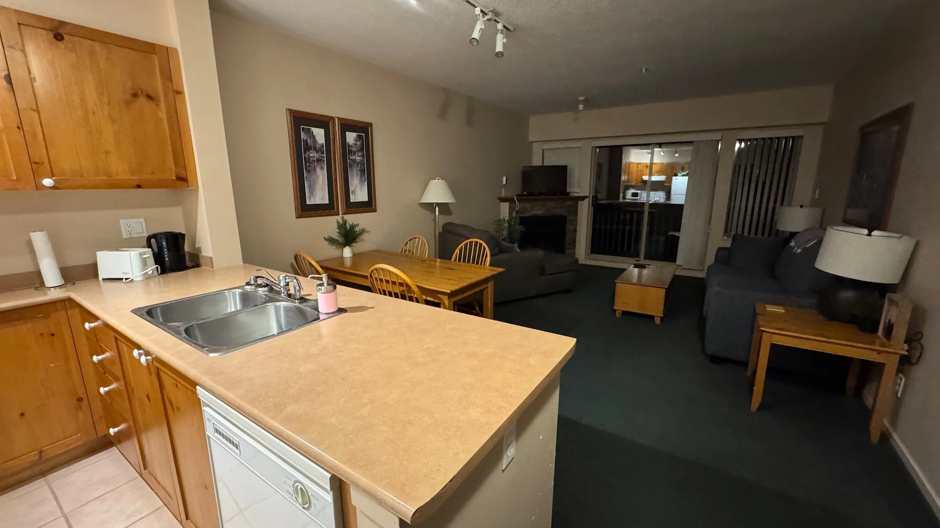 The inside of our little suite. It’s a bit dated, but has everything you need and was right slope-side for ski in/ski out.