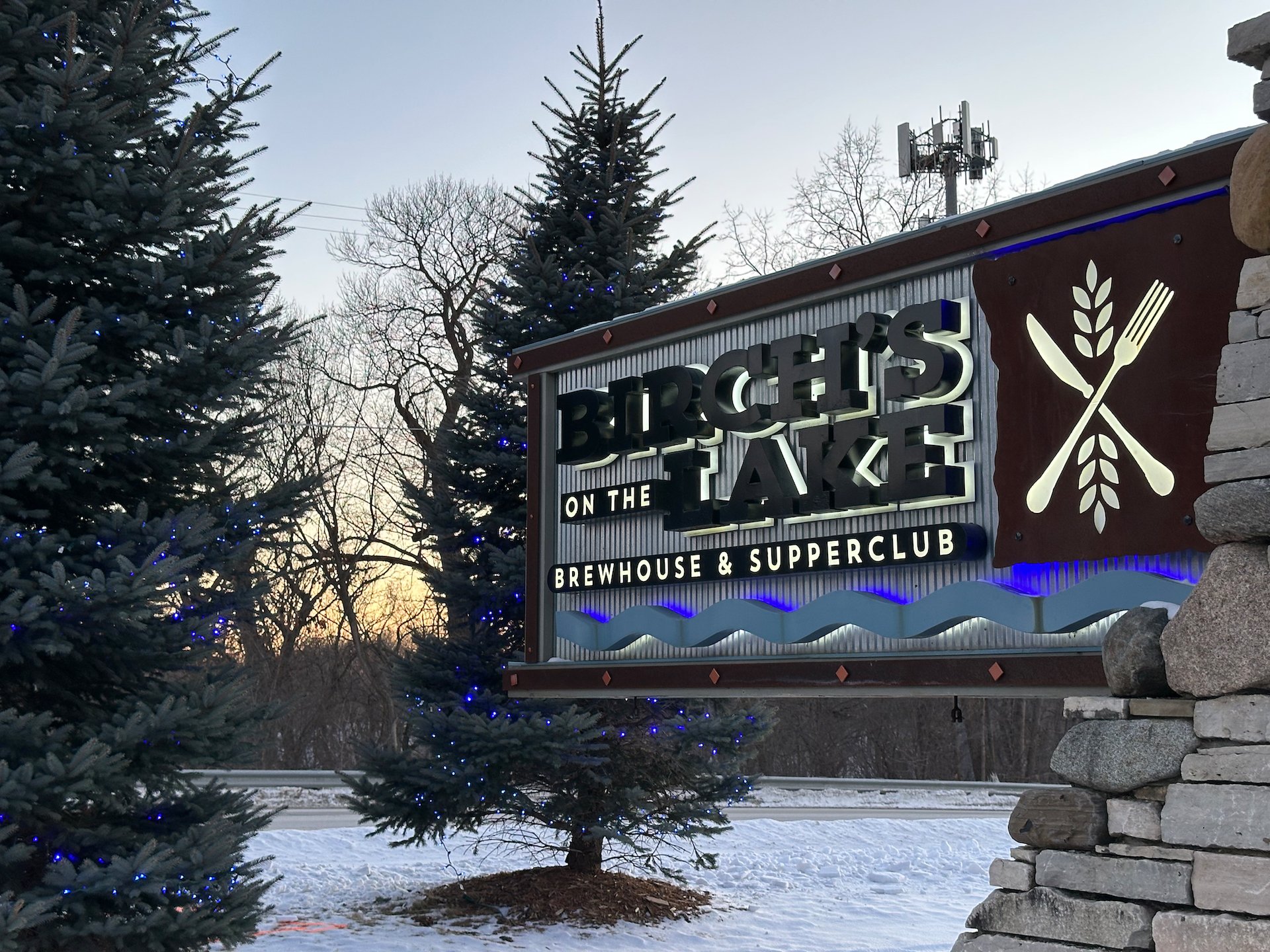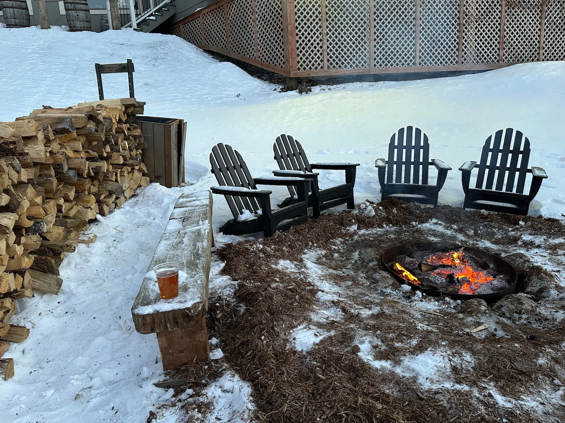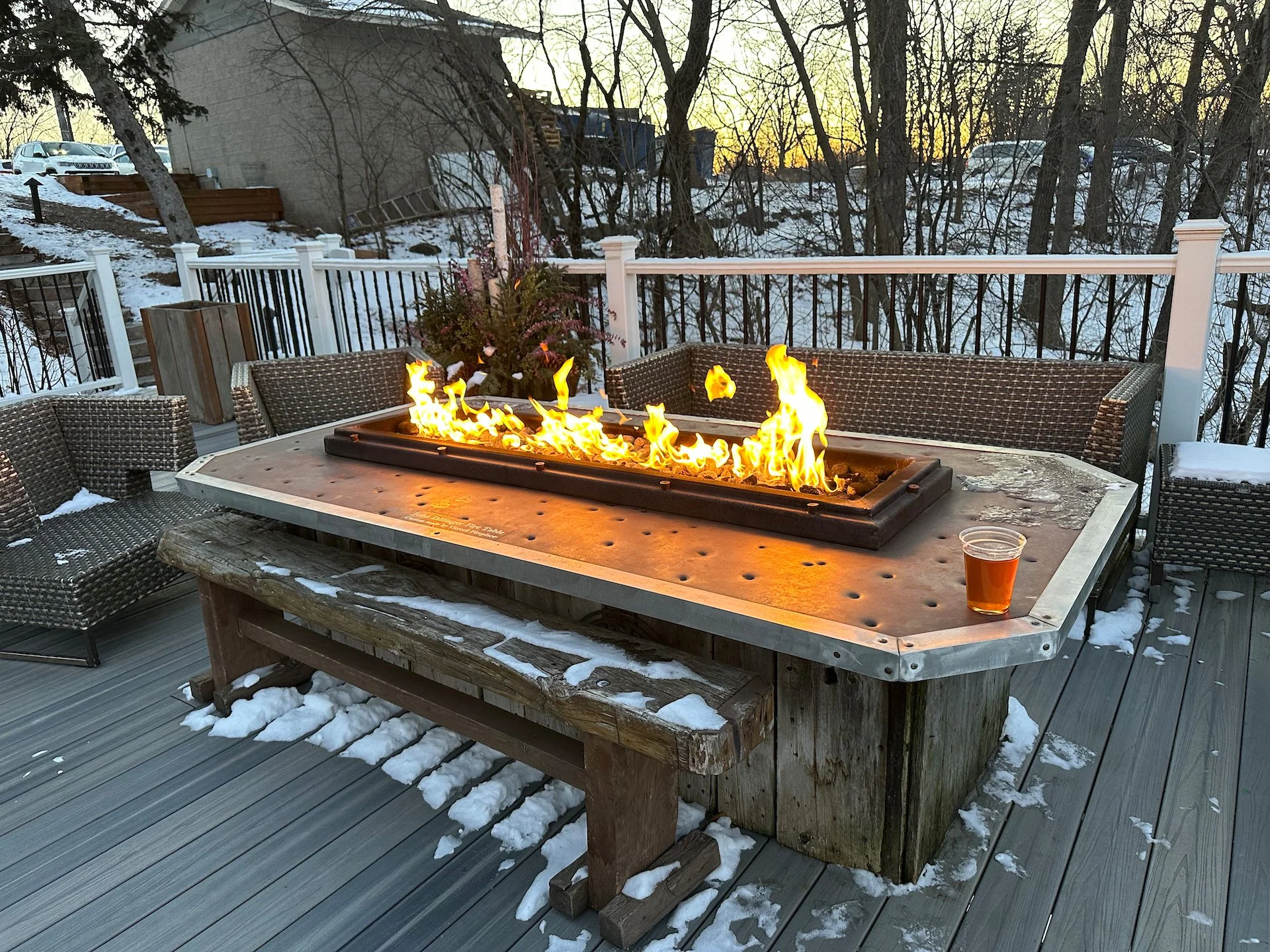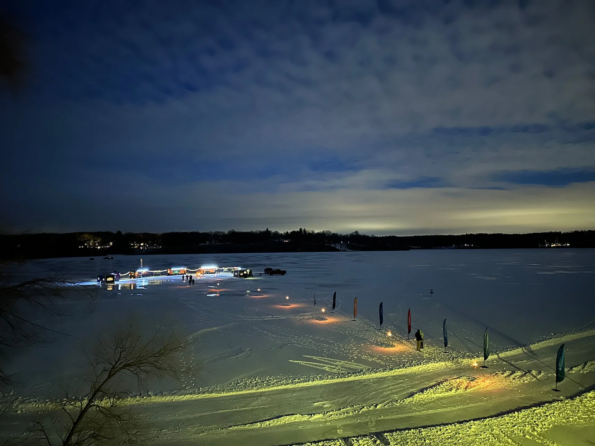 After the mini trade show, everyone was taking a fancy bus over to the evening event at Birch’s on the Lake, a brew pub, which as the name suggested, was on the lake. They bring in very fancy ice fishing trailers and so you could stay inside the pub, sit outside at a series of really nice fires, or head out and do some ice fishing. I managed to do all three!