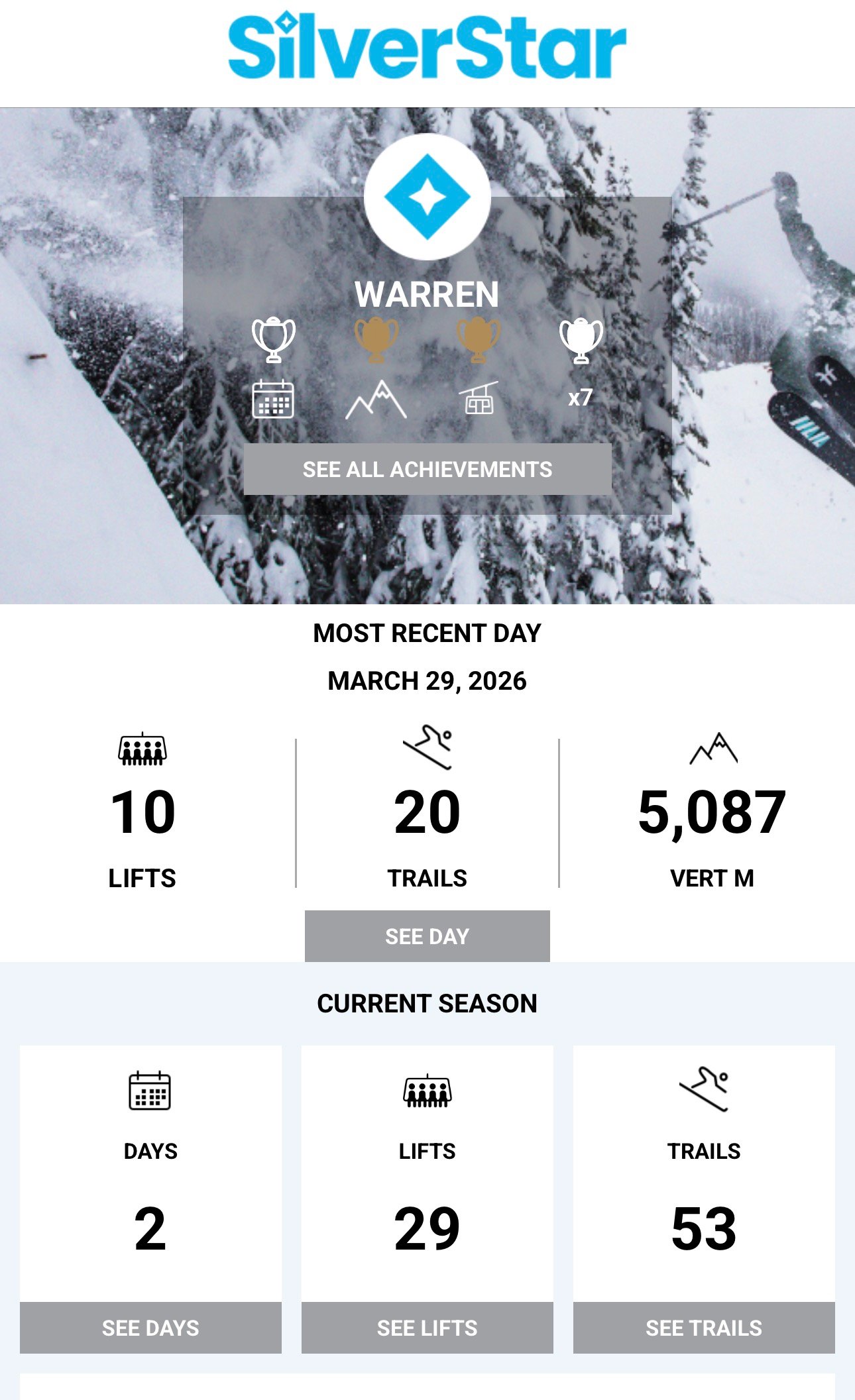 While there wasn’t any new snow, there was lots of snow and lots of freshly groomed runs to be found. We started off on the “front” side of the mountain. making many runs down to the Comet Express lift of really nice, fast blue runs. We chatted with the locals on the lift back up, all of whom were embarrassed by the conditions and apologized for them - apparently it had been a bad year for the resort. We thought it was amazing compared to what we’d done earlier in the season.