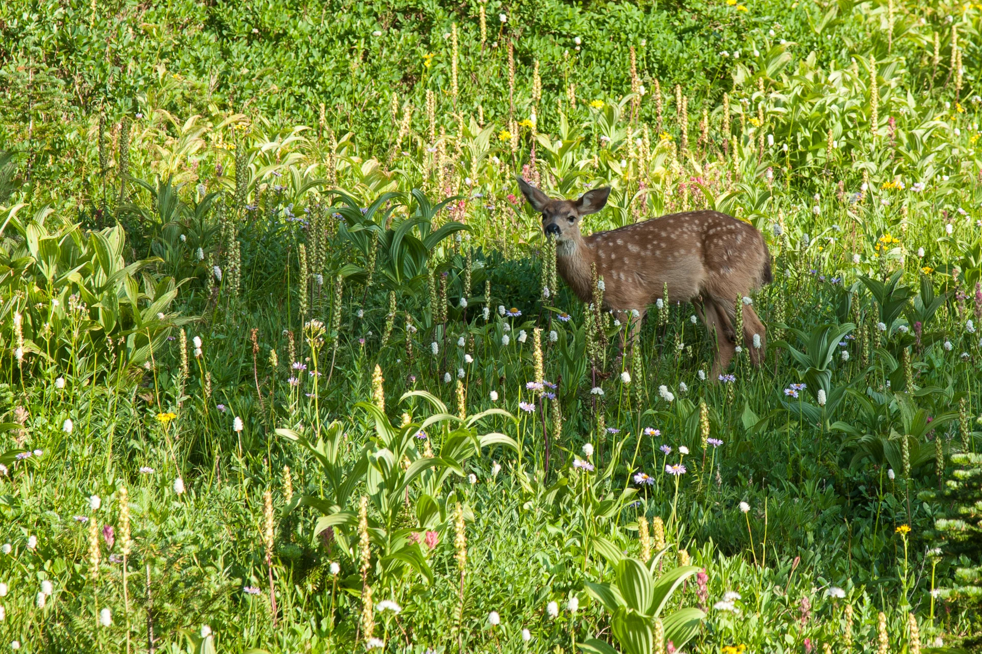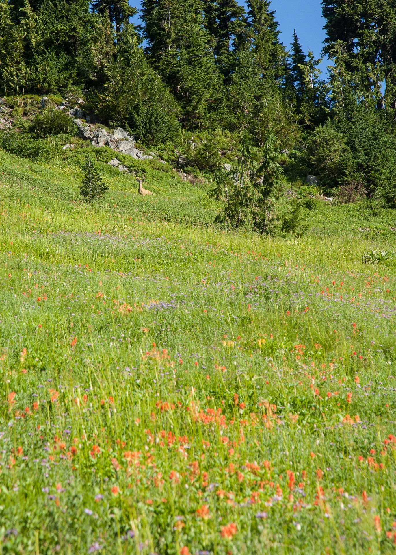 Along the path, we saw many deer, including this one in a full meadow of wildflowers.