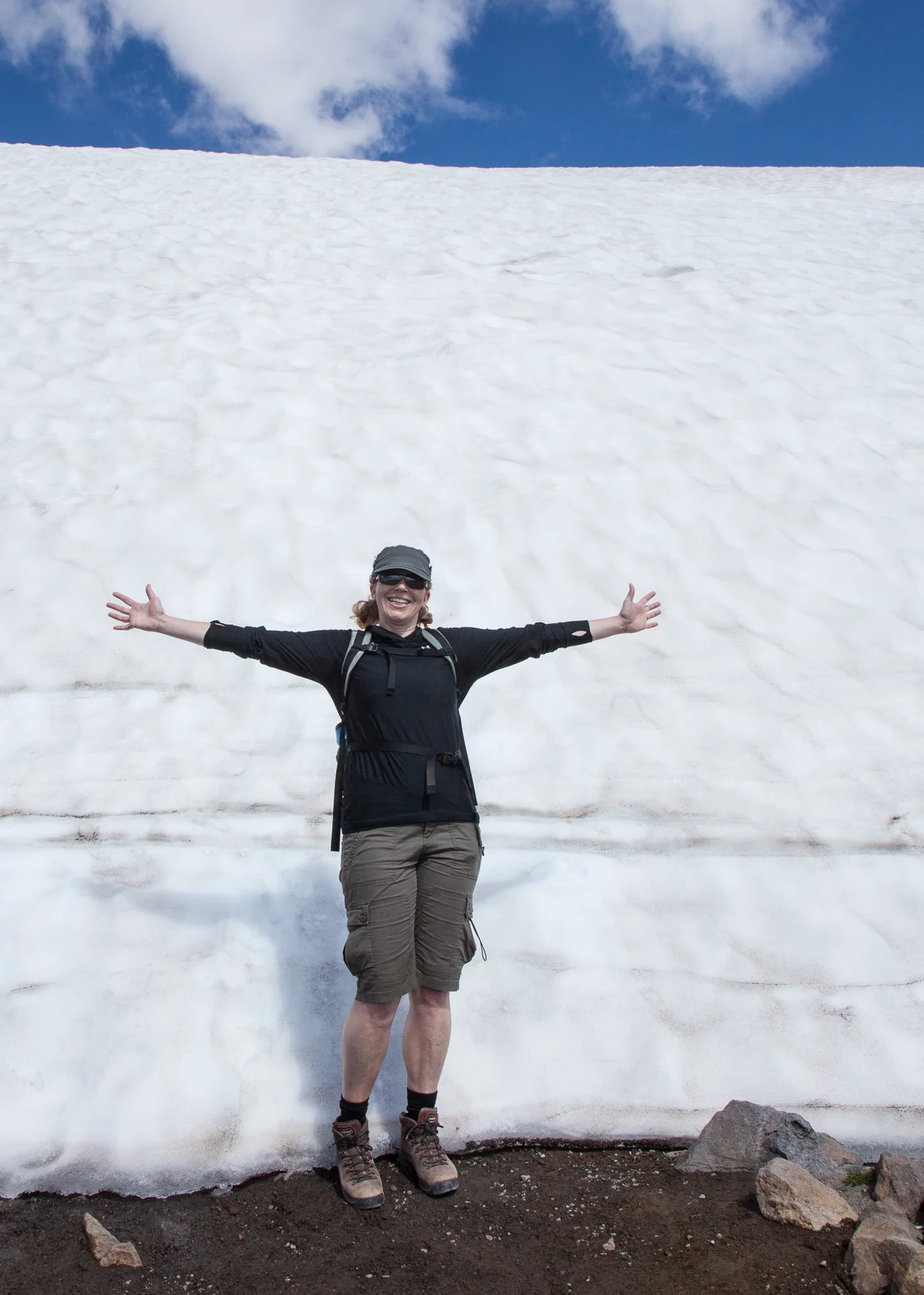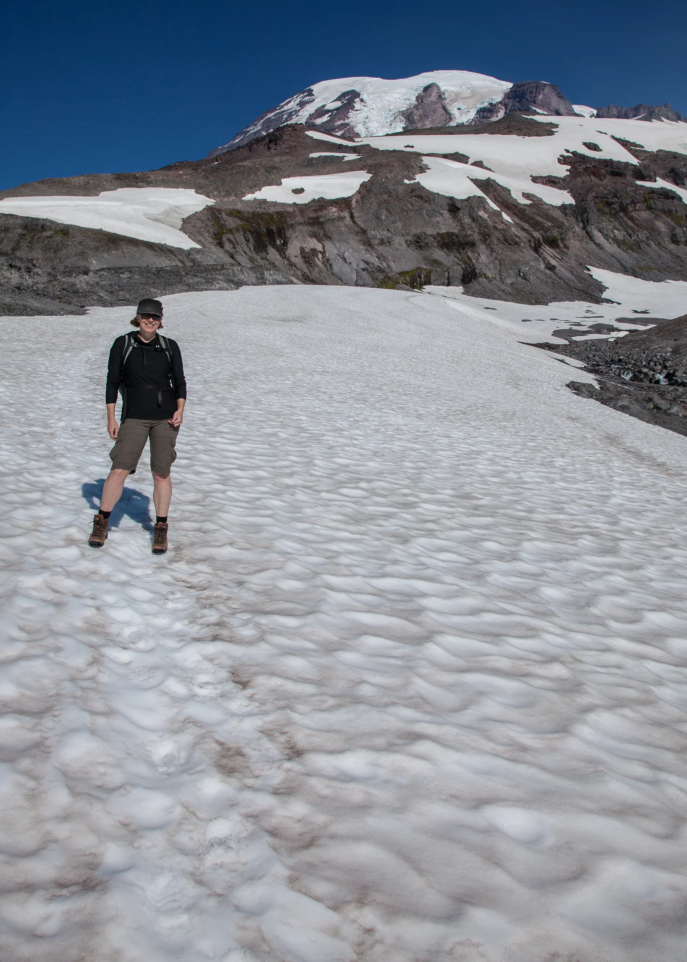 Justine on the snow at the end of the Paradise Glacier Trail.