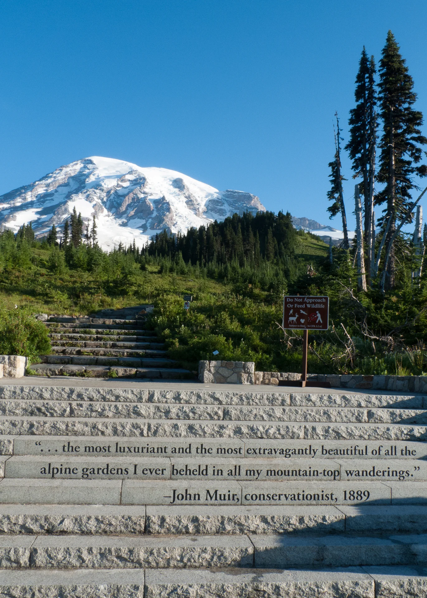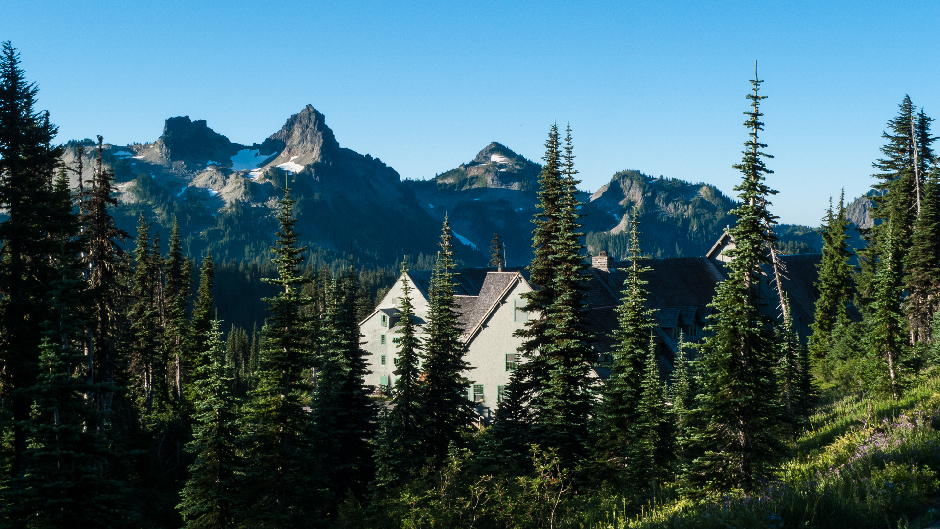 One last short hike on the mountain, and a look back down at the Paradise Inn.