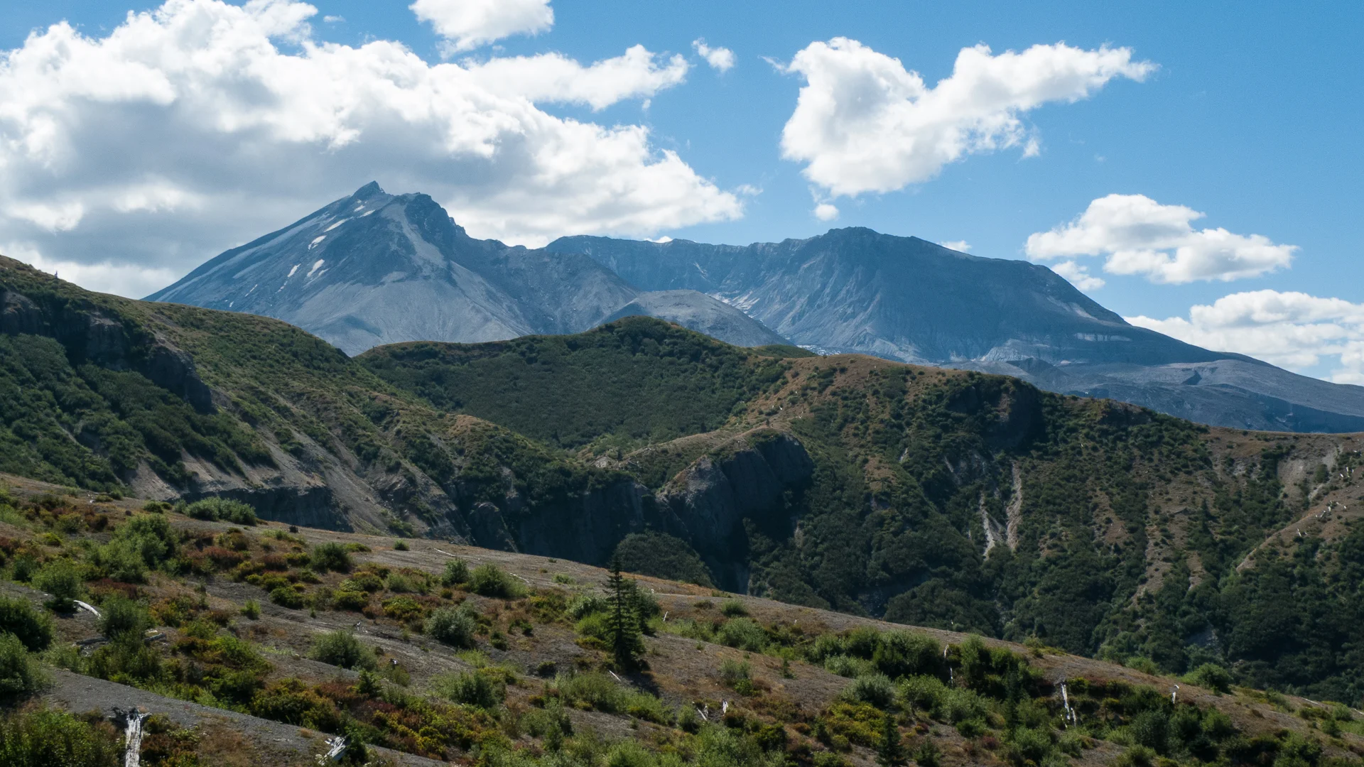 Not long after we came to a crossroads, where there was a side road that would take us to one of the two official viewpoints for Mount St. Helens. Given that we are not likely to come back that way, and it was a clear, beautiful day, we figured we should go check out the mountain. So we headed back west, not realizing that we were adding about 50 miles of twisty highway to our journey.