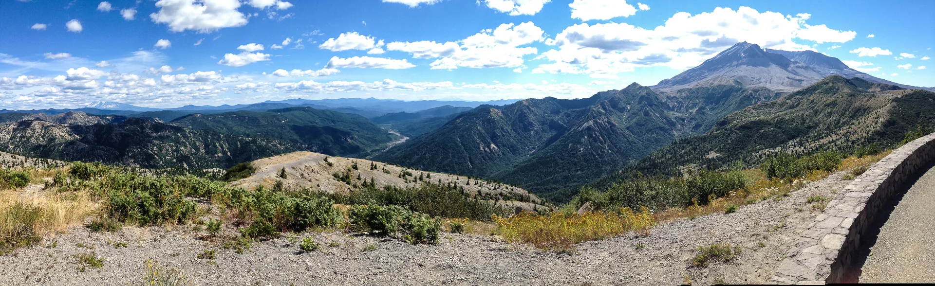 Two volcanos, one shot. A pano from Mount Hood to Mount St. Helens