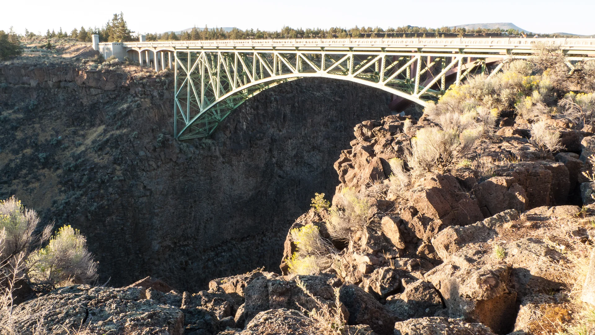 We crossed the bridge, but sadly there was no time to stop in Hood River, so we continued on south. We passed close by Government Camp and the base of Mount Hood (our third major volcano of the day), and continued on deeper into Oregon. Between Mount Hood and Bend we passed though an area of grasslands that was really cool, and completely different from any other ecosystem we had been through to date. It was completely different from the lush forests, but beautiful in its own way with the golden grasses in the late afternoon light.