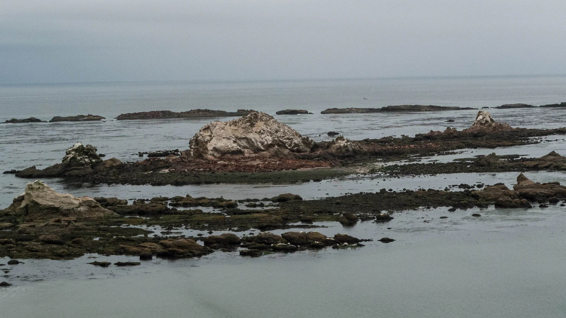 It's hard to see with this shot, but all the brown blogs are sea lions, hauled out on the rocks.