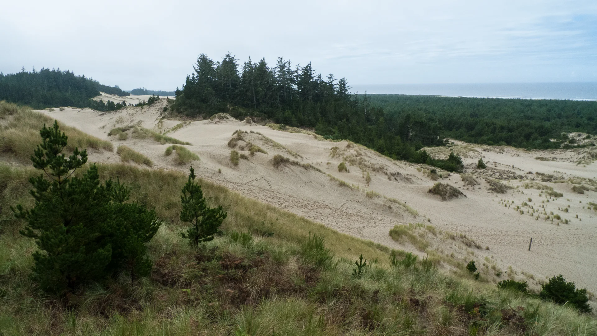 This stretch of the drive took us through the Oregon Dunes State Park, a series of huge sand dunes along the shore. We stopped at a couple of spots to explore, and stretch our legs.