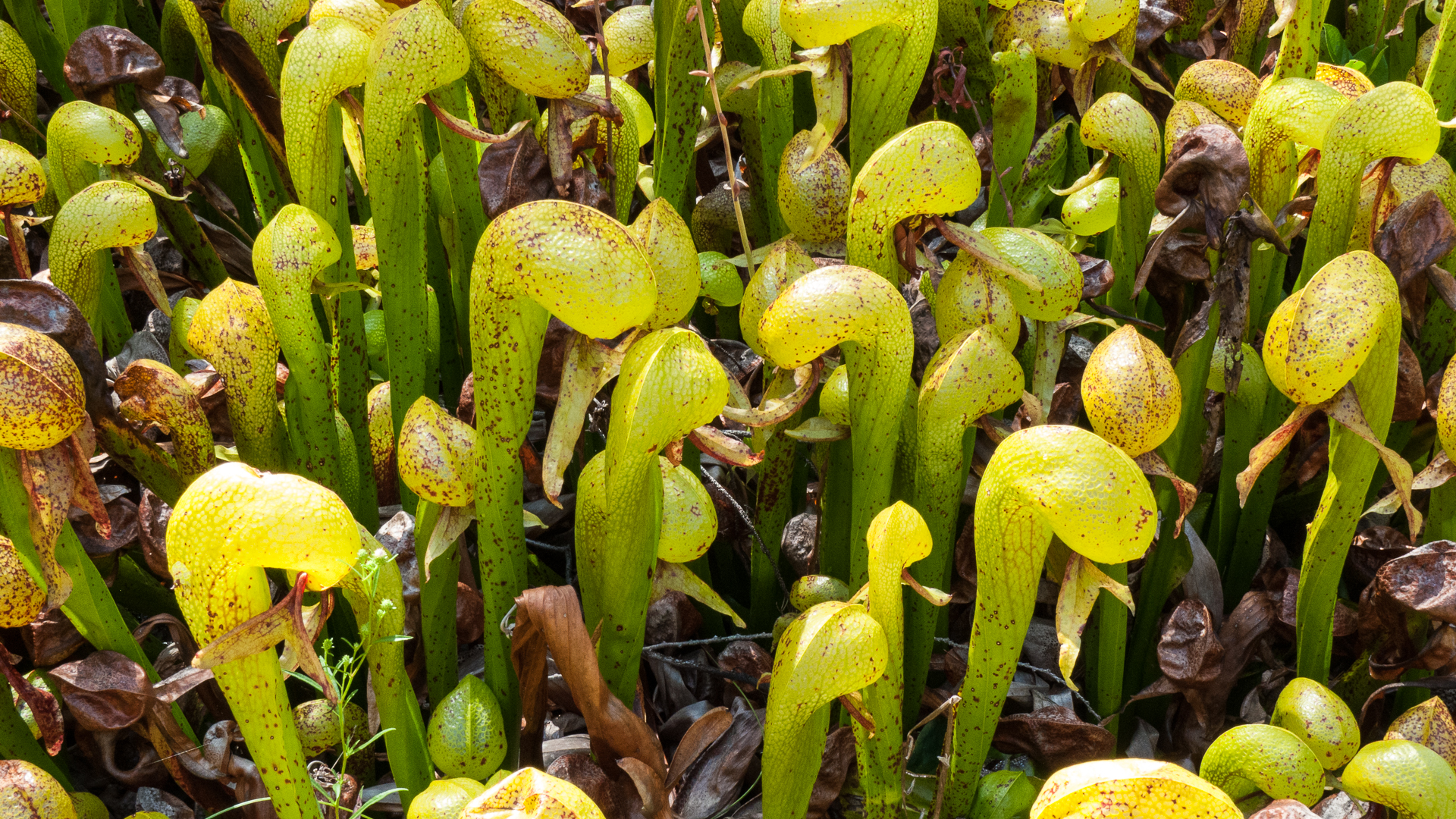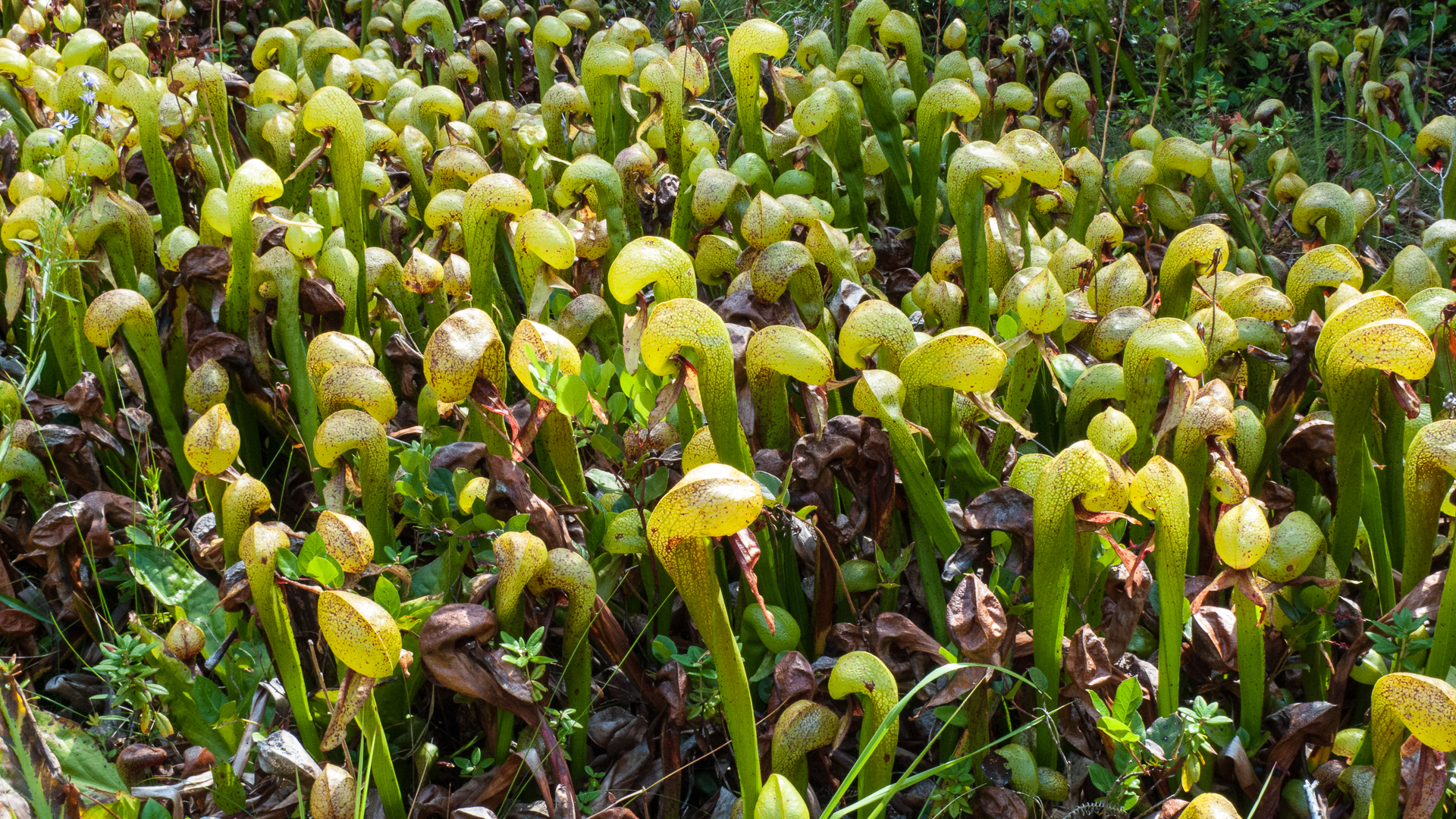 We had a book that gave mile-by-mile suggestions for interesting things to see. One of them noted the location of a tiny park that was set-up to protect a pocket of unique plants - carnivorous pitcher plants. You see these every once in a while in nurseries as unusual gifts, but this was their natural habitat, and it was amazing to see how many of them were growing in this one spot. And how big they are. I can only guess at how many insects it takes to feed that many plants.