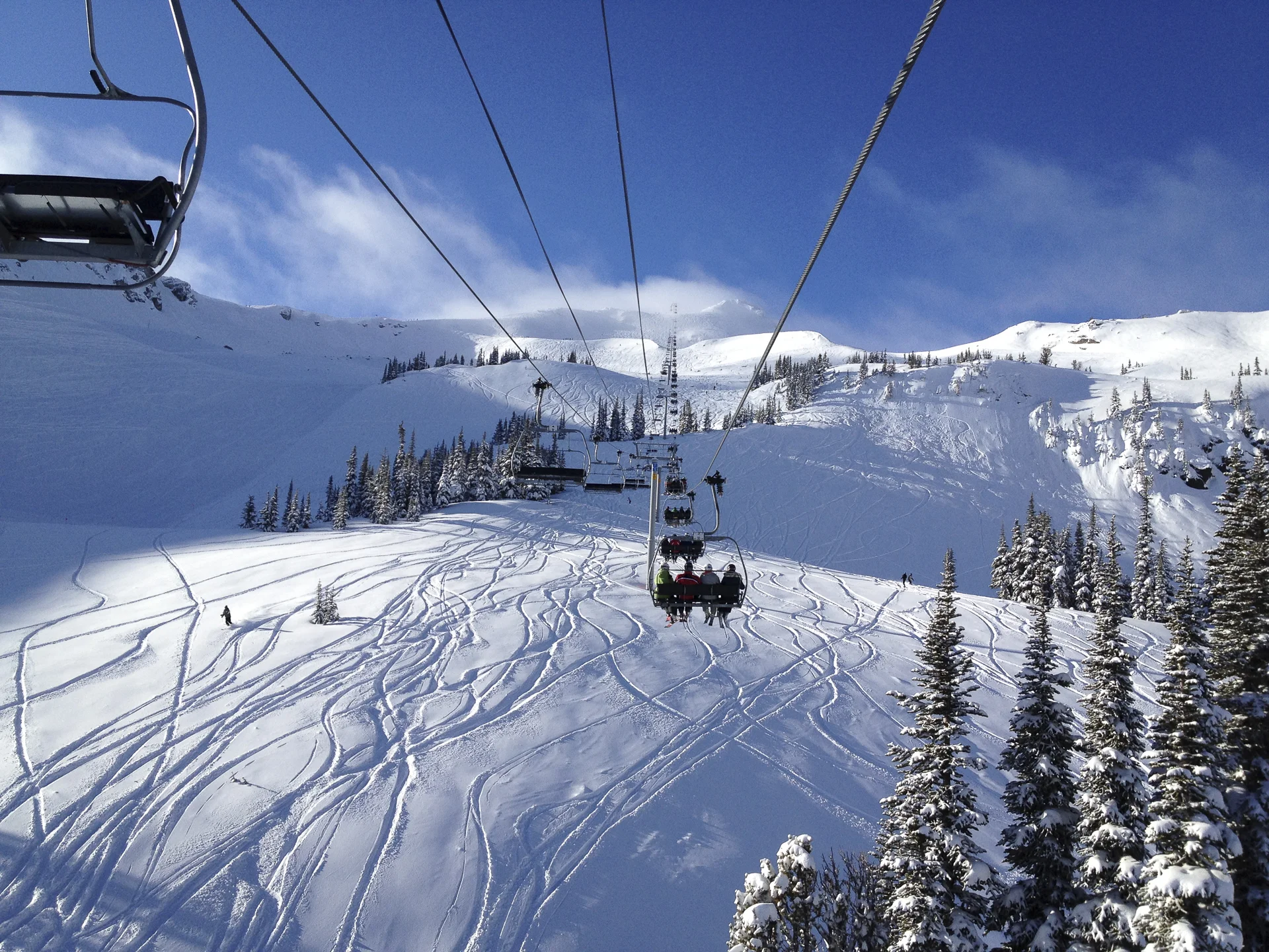 Going up on Harmony Chair - lots of fresh tracks available; a couple of nice views of the local scenery; even after three trips down Harmony Bowl (almost lunch time) there was lots of snow still to be found!