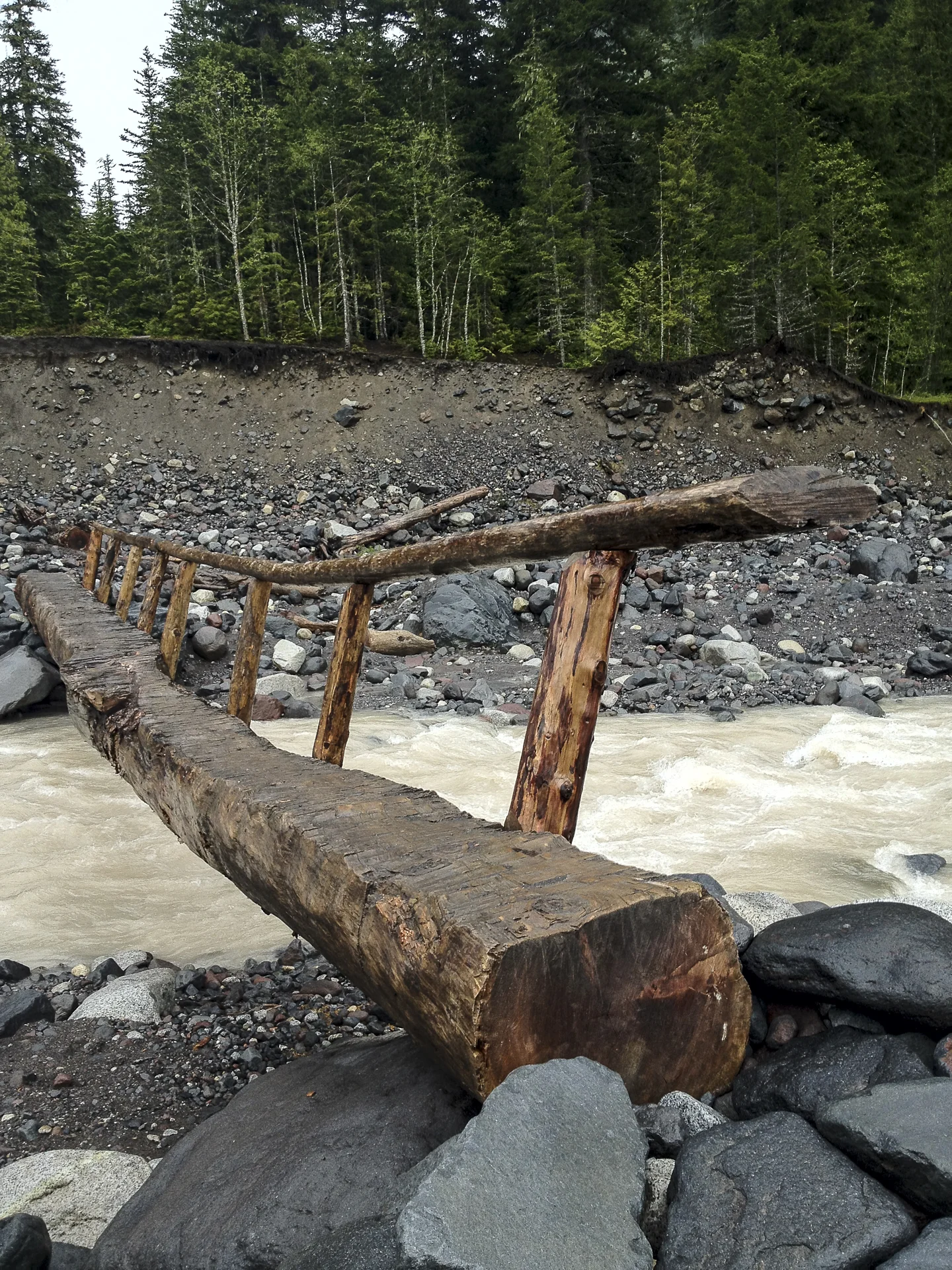 I did a couple of short hikes before the light disappeared. One involved crossing the river over this cool log bridge.