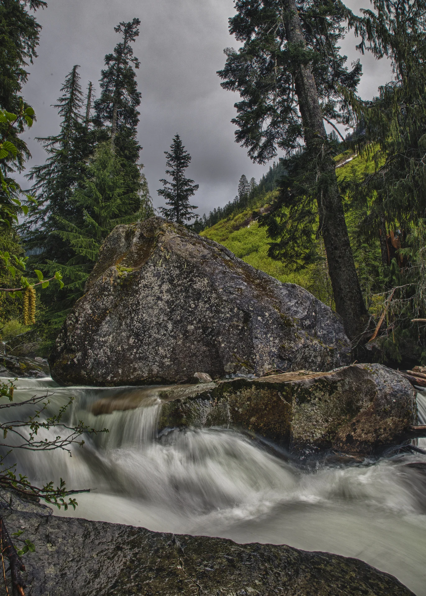 I got off the I5 at highway 12, and headed east towards the park. It was a nice enough drive, and I stopped occasionally to take some pictures. Once inside the park I headed to the campsite to claim a spot. There's probably only three other groups in the whole place. After setting up camp, I walked across the road to the trailhead, and did a short hike to Clark's Falls. Sadly, while the waterfall was impressive, it was not photographable. You look at it from the top, and there are too many trees in the way. As I came back down I did shoot a few things, and we'll see if any of them turned out.