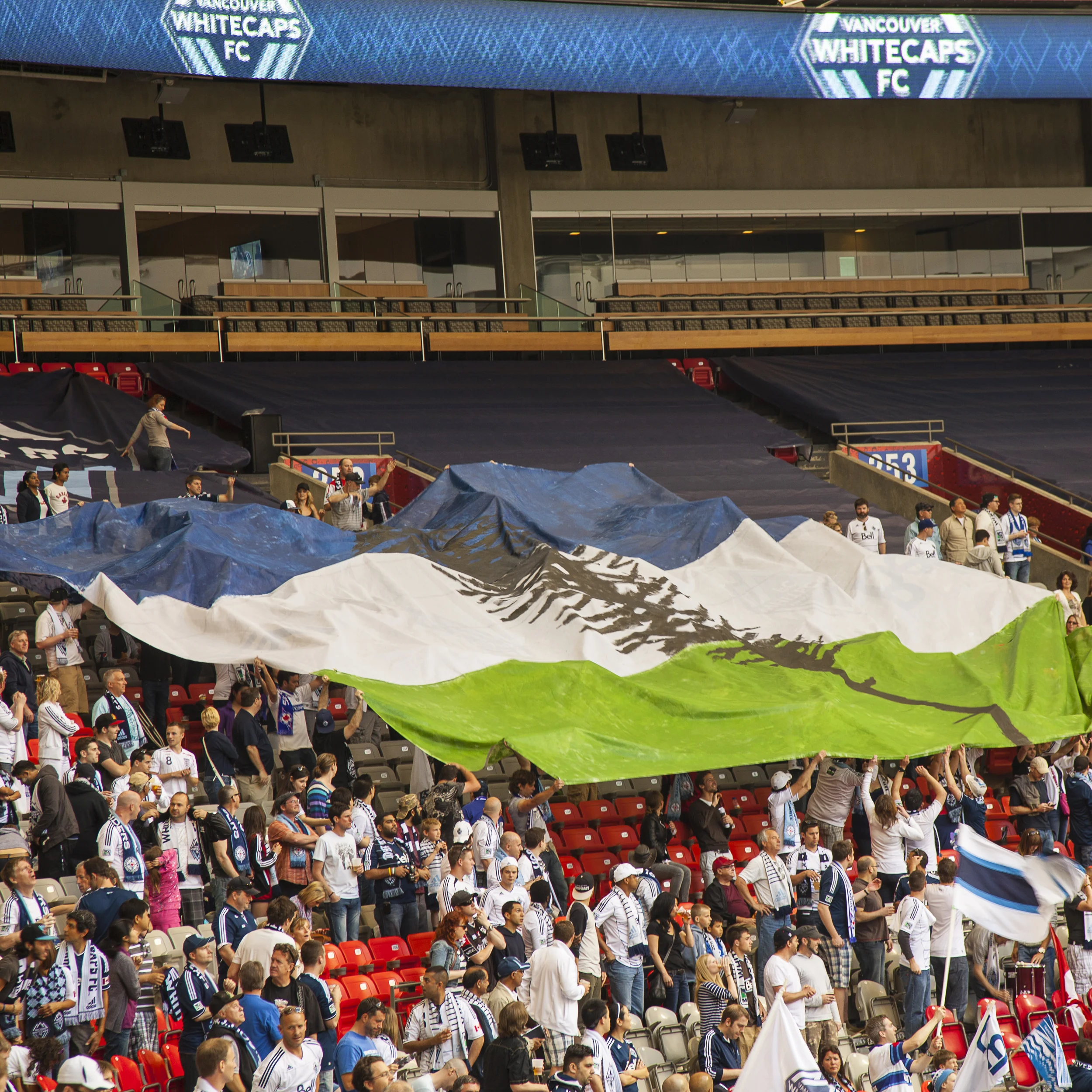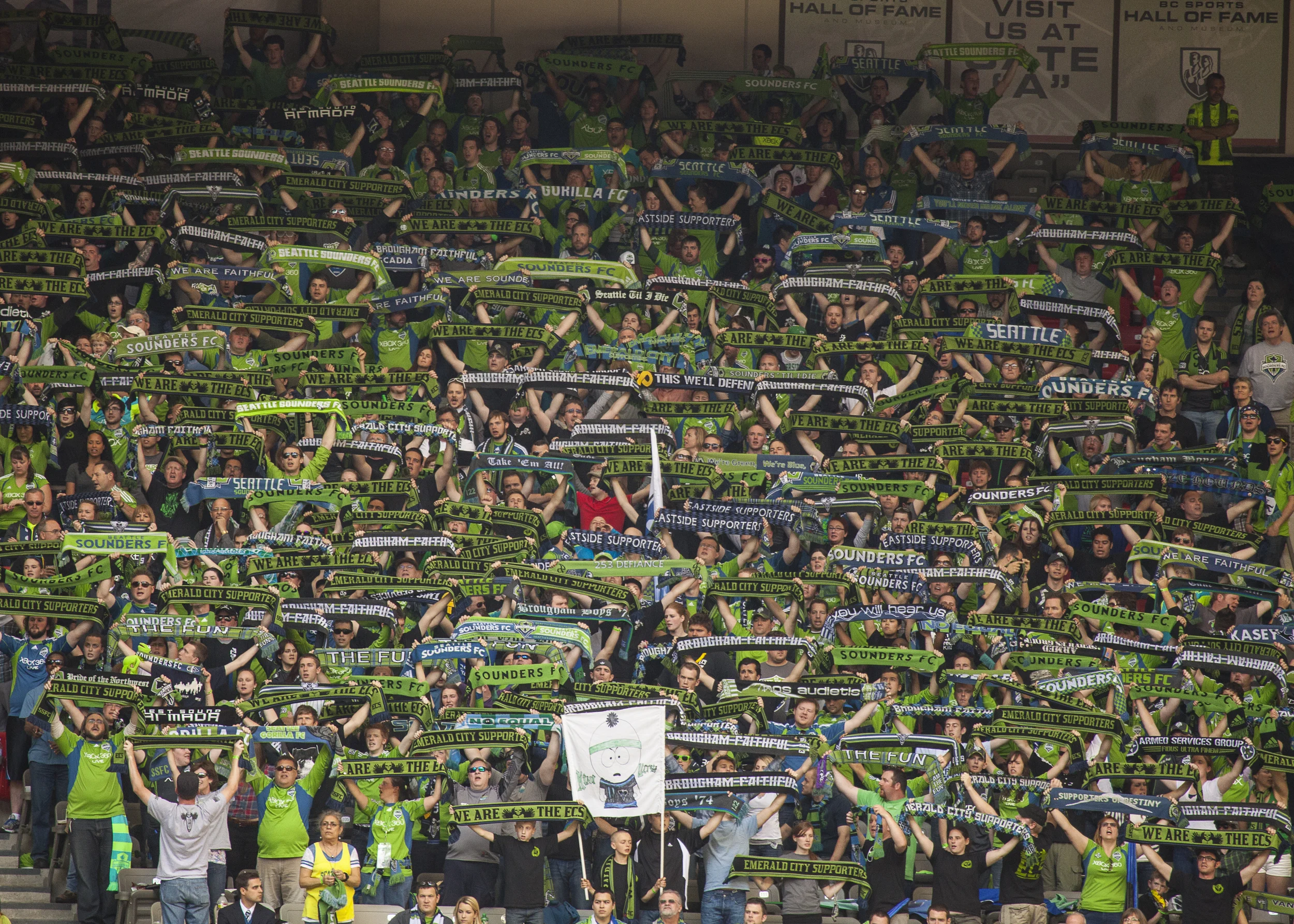 It was a pretty action-packed game - the final score was 2-2. Vancouver had the lead until the last few minutes, when Seattle drew even. It was a great atmosphere, with both sets of fans really getting into the game.
