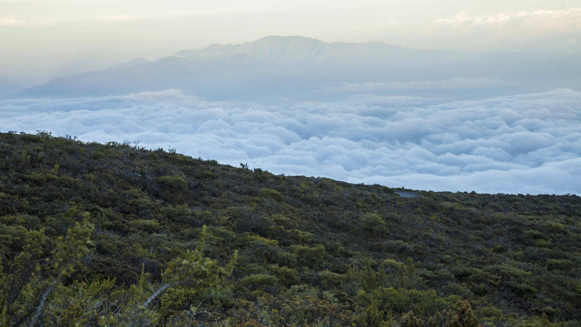 Today we decided to make a big day of it and do a huge road trip around the island. We started out at 4:00 a.m., with the intent of driving to the summit of Haleakala, the main volcano on Maui. We thought we were early enough, but the parking lot at the peak was still full (and the road closed) by the time we got there. Crazy. The weather didn't cooperate anyway - it was super cold (close to zero) and totally clouded over. The sun started to break through after we started our drive back down.