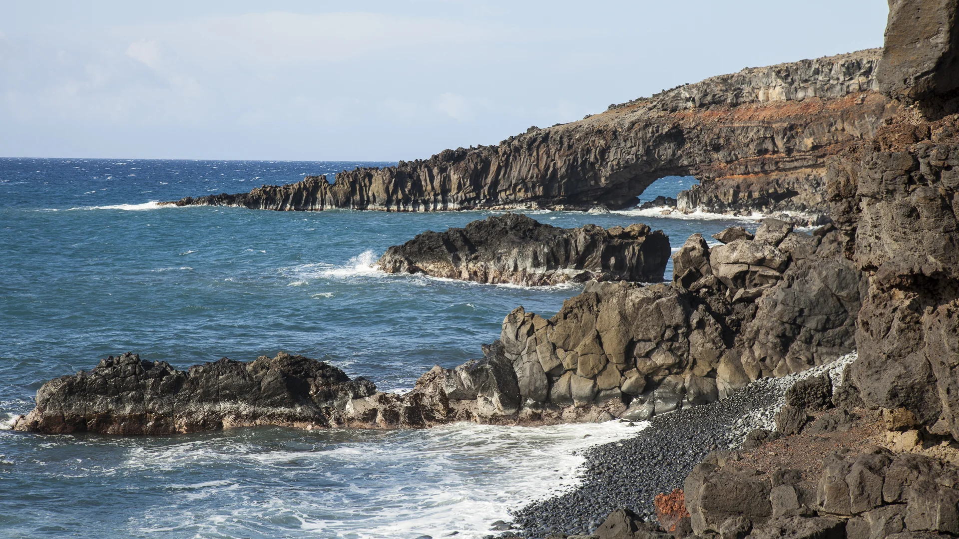 Cool rock arch over the ocean. There was also a blow spout, a hole where the ocean would spurt up through, when the surf was high.