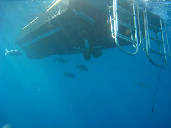 After a shortish surface interval, we dropped back into clear, calm waters. There were some good sized fish hanging around the boat looking for handouts, which the captain obliged. Once the group was in the water, we started exploring the coral heads around the area. Almost immediately our dive leader found one of the biggest turtles I've ever seen, sleeping under one of the coral heads. We then went through a series of arches which provided some good photo opps. Not long after was the highlight of the dive. During the briefing our guide had mentioned a cave that had an air pocket in the top that was big enough for our whole group to surface in. It sounded pretty cool, and he mentioned that turtles often sleep in there as well.