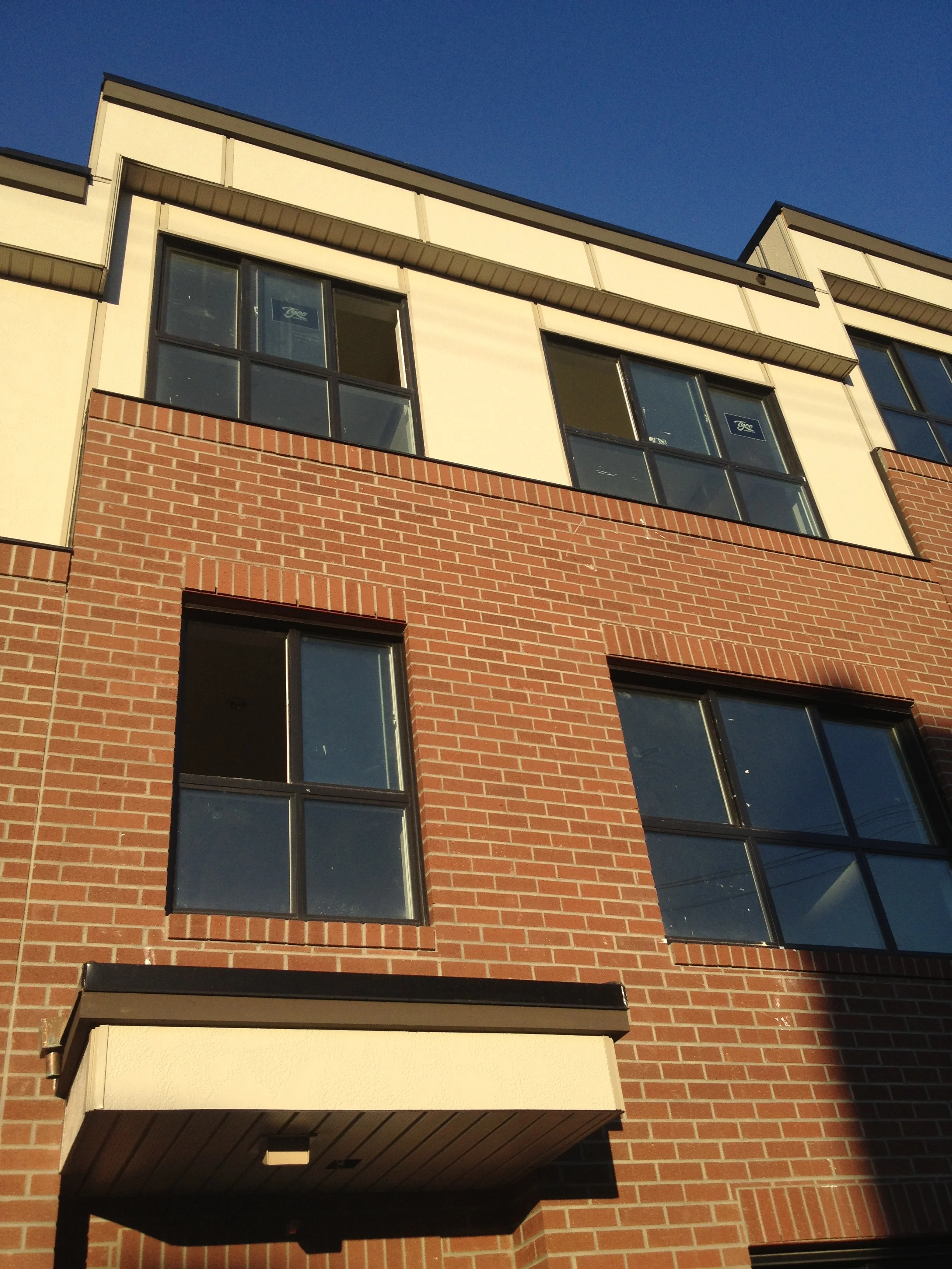 Justine and I took a little road trip this past weekend, so I'll put some posts up on that as I have some time. In the meantime, we walked by the new house today and noticed some definite progress being made. It's all little things, but they do seem to confirm that they are moving towards getting the place done. They are supposed to have the model suite open this weekend. I'm not completely convinced, as there's quite a lot of work still to do on the outside.