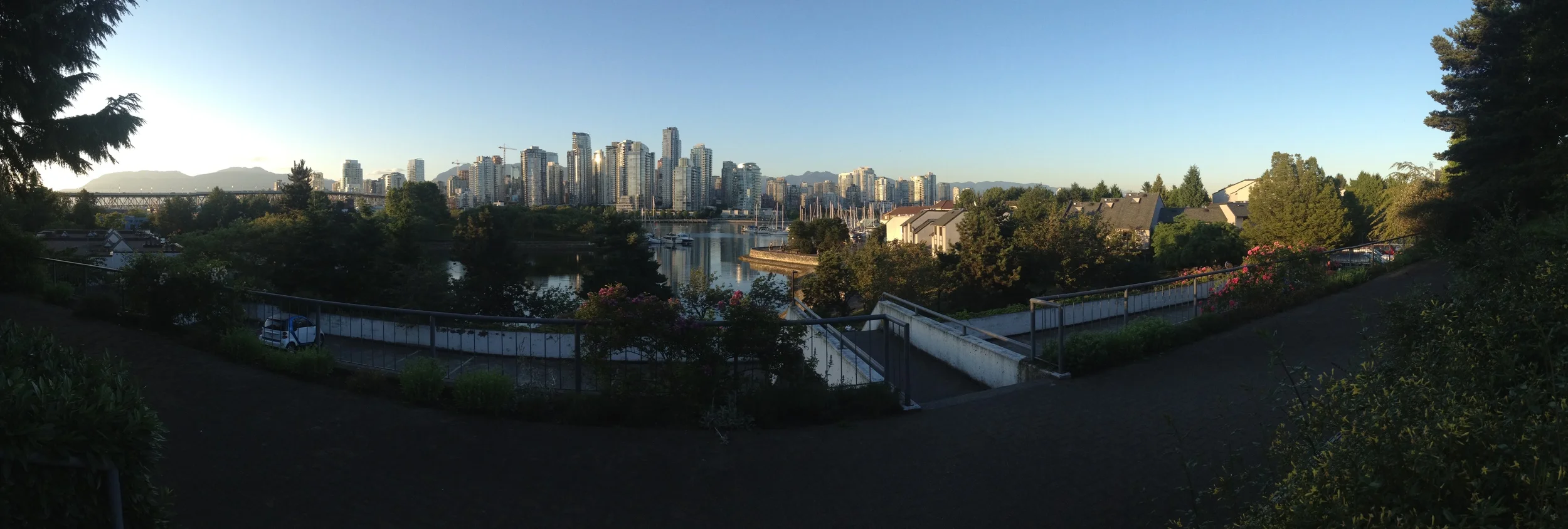 A panoramic view of downtown Vancouver, from near our new place.